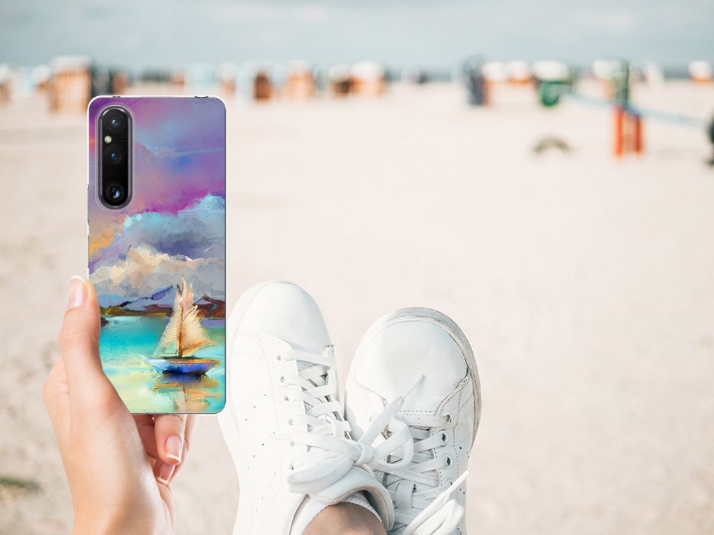 Het mooie ontwerp op dit hoesje zou je zo aan de muur willen hangen. Dit abstracte ‘schilderij’ van een bootje op een meer valt op vanwege de prachtige tinten blauw en paars. Een prachtig hoesje voor de liefhebber van kunst, boten en landschappen. Met een Hoesje maken is je Sony Xperia 1 V goed beschermd. TPU is flexibel en heel erg sterk. Zo is je telefoon aan de achterkant en de randen heel goed beschermd. De case is aan de bovenkant bedrukt, de randen blijven transparant. Het TPU-hoesje is perfect te combineren met een screenprotector, zo zijn je telefoon en je beeldscherm altijd goed beschermd.