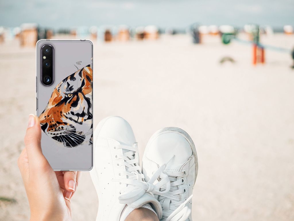 Omdat we tijgers zo bijzonder vinden, hebben we besloten deze voor zeer lage kosten voor jou op een Sony Xperia 1 V Hoesje maken te zetten. Dit kunnen we goedkoop doen omdat we het drukwerk in eigen beheer doen. De tijger staat geschilderd op de tpu case tegen een grijs met wit geblokte achtergrond. De Watercolor Tiger kunnen we bedrukken op verschillende soorten hoesjes, zoals deze tpu cases. Deze case kan exclusief in het bezit van jou komen. Zeker als je er zelf nog unieke teksten en/of beelden aan toevoegt. Het tpu hoesje is zeer flexibel en wordt alleen aan de bovenzijde bedrukt met de tijger. De randen van dit flexibele hoesje blijven doorzichtig. Jij zorgt voor de perfecte bescherming van je smartphone met dit tpu hoesje met geschilderde tijger tegen een grijs met witte achtergrond.
