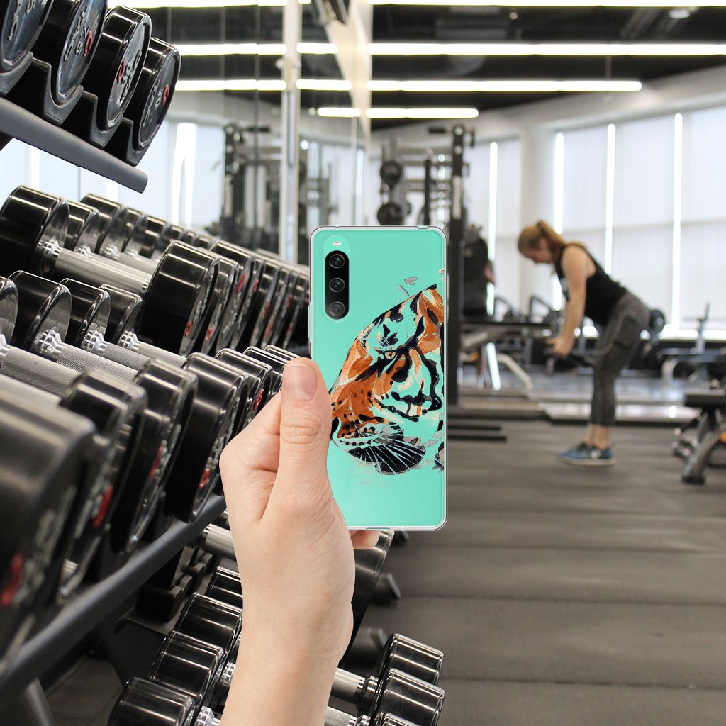 Omdat we tijgers zo bijzonder vinden, hebben we besloten deze voor zeer lage kosten voor jou op een Sony Xperia 10 V Hoesje maken te zetten. Dit kunnen we goedkoop doen omdat we het drukwerk in eigen beheer doen. De tijger staat geschilderd op de tpu case tegen een grijs met wit geblokte achtergrond. De Watercolor Tiger kunnen we bedrukken op verschillende soorten hoesjes, zoals deze tpu cases. Deze case kan exclusief in het bezit van jou komen. Zeker als je er zelf nog unieke teksten en/of beelden aan toevoegt. Het tpu hoesje is zeer flexibel en wordt alleen aan de bovenzijde bedrukt met de tijger. De randen van dit flexibele hoesje blijven doorzichtig. Jij zorgt voor de perfecte bescherming van je smartphone met dit tpu hoesje met geschilderde tijger tegen een grijs met witte achtergrond.