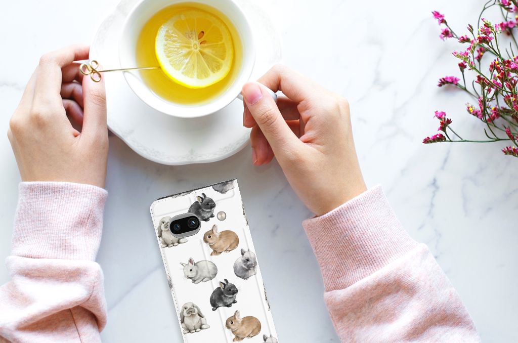 Wist je dat er wel 50 verschillende konijnenrassen zijn die zich onderscheiden in kleur, vacht, bouw en formaat? Daarom kon dit design met konijntjes eigenlijk niet ontbreken in onze collectie hoesjes. Wij zijn in ieder geval helemaal verliefd op deze schattige konijntjes. Dit design wordt geprint op een Hoesje maken speciaal op maat gemaakt voor de Google Pixel 7A. In dit hoesje kun je een pasje kwijt, super fijn toch? Vouw het hoesje om en zet het horizontaal neer voor als je graag filmpjes op je Google Pixel 7A kijkt. De magneten aan de binnenkant zorgen ervoor dat het hoesje dicht blijft in bijv. je tas. Bescherm jouw smartphone vandaag nog met dit super schattige hoesje met konijntjes!