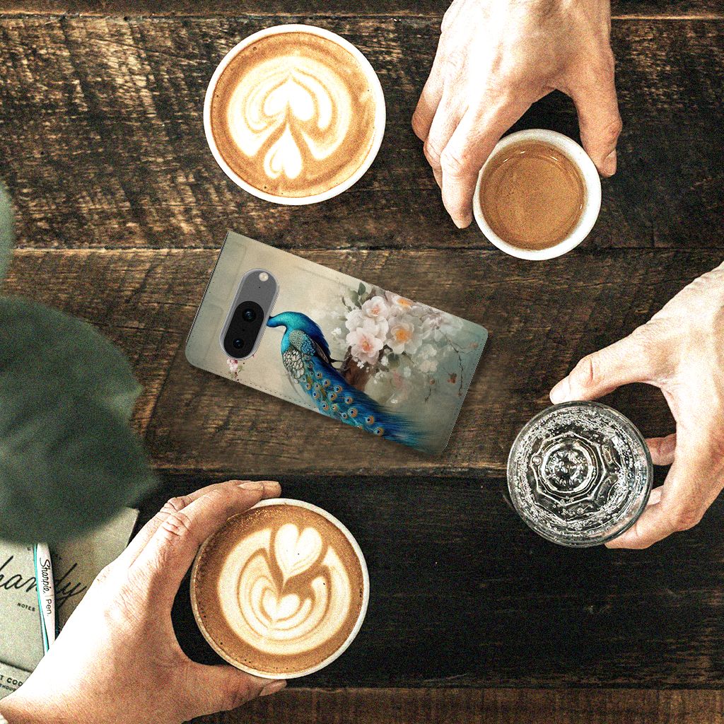 Wist je dat de sleep van pauwen bestaat uit wel 150 kleurige veren? Als de haan zijn sleep opzet om een vrouwtje te veroveren dan zie je deze veren het duidelijkst. Er zijn mensen die geloven dat een pauwenveer geluk brengt! Daarom mag dit romantische vintage pauwen design zeker niet ontbreken in onze collectie. Het blijven toch echt prachtige en fascinerende dieren om te zien! Dit design wordt geprint op een Hoesje maken speciaal op maat gemaakt voor de Google Pixel 8. In dit hoesje kun je een pasje kwijt, super fijn toch? Vouw het hoesje om en zet het horizontaal neer voor als je graag filmpjes op je Google Pixel 8 kijkt. De magneten aan de binnenkant zorgen ervoor dat het hoesje dicht blijft in bijv. je tas. Bescherm jouw smartphone vandaag nog met dit romantische pauwen design hoesje!