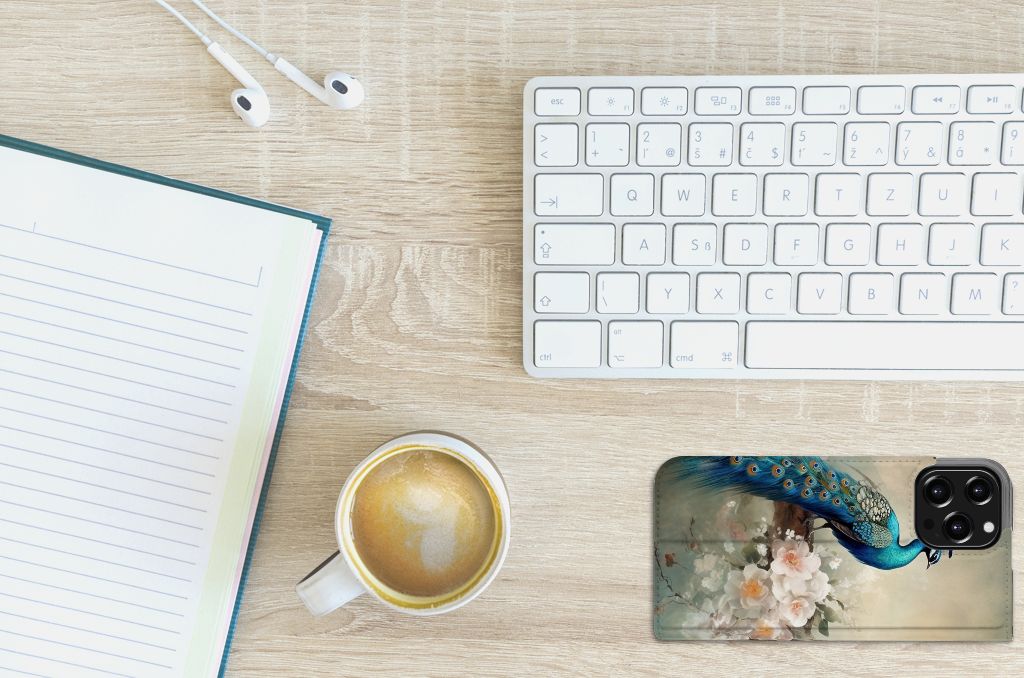 Wist je dat de sleep van pauwen bestaat uit wel 150 kleurige veren? Als de haan zijn sleep opzet om een vrouwtje te veroveren dan zie je deze veren het duidelijkst. Er zijn mensen die geloven dat een pauwenveer geluk brengt! Daarom mag dit romantische vintage pauwen design zeker niet ontbreken in onze collectie. Het blijven toch echt prachtige en fascinerende dieren om te zien! Dit design wordt geprint op een Hoesje maken speciaal op maat gemaakt voor de iPhone 13 Pro Max. In dit hoesje kun je een pasje kwijt, super fijn toch? Vouw het hoesje om en zet het horizontaal neer voor als je graag filmpjes op je iPhone 13 Pro Max kijkt. De magneten aan de binnenkant zorgen ervoor dat het hoesje dicht blijft in bijv. je tas. Bescherm jouw smartphone vandaag nog met dit romantische pauwen design hoesje!