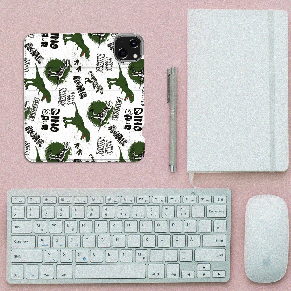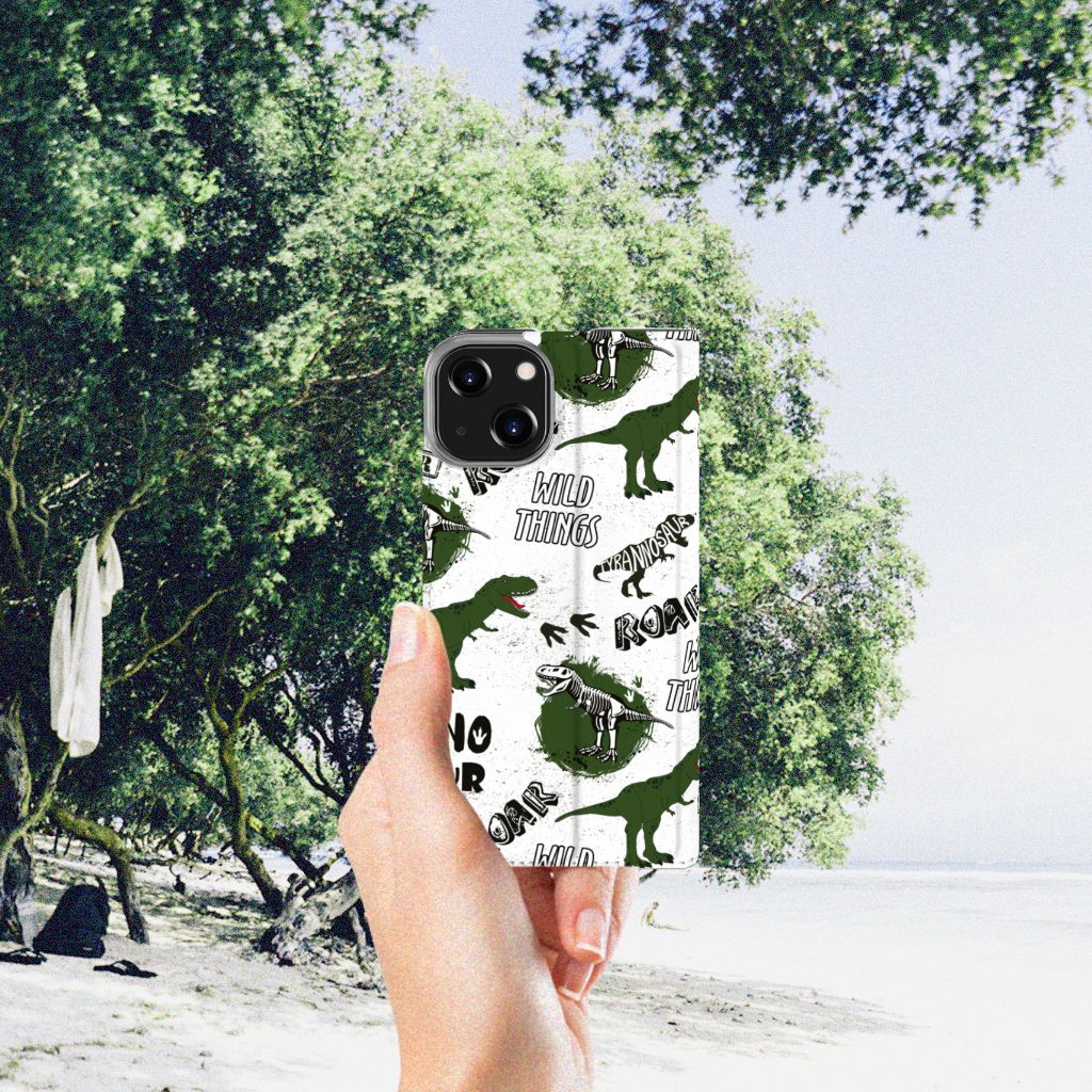 Ook zo gek op alles met dinosaurussen te maken heeft? Dan mag dit hoesje met dino’s zeker niet ontbreken in jouw collectie! De skeletten, pootafdrukken en dino’s zorgen er hopelijk voor dat iedereen van jouw iPhone 14 afblijft! Dit toffe dino design wordt geprint op een Hoesje maken waarin je een pasje kwijt kunt. Vouw het hoesje om en zet het horizontaal neer voor als je graag filmpjes op je iPhone 14 kijkt. De magneten aan de binnenkant zorgen ervoor dat het hoesje dicht blijft in bijv. je tas. Bescherm je smartphone vandaag nog met dit gevaarlijke Dinosaurus design hoesje!