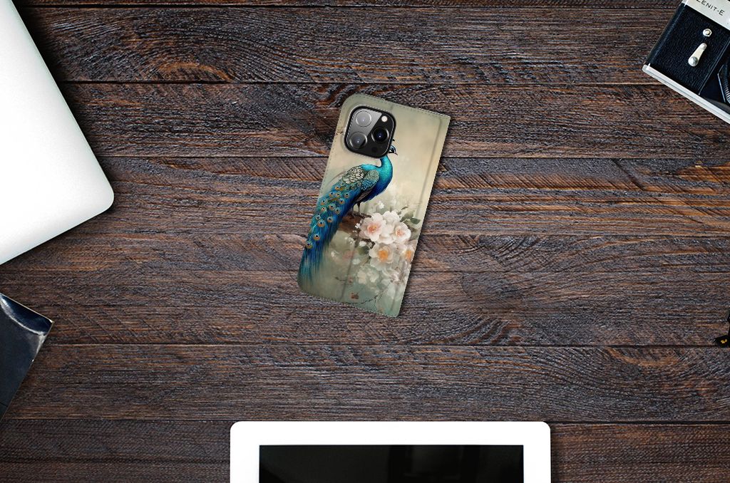 Wist je dat de sleep van pauwen bestaat uit wel 150 kleurige veren? Als de haan zijn sleep opzet om een vrouwtje te veroveren dan zie je deze veren het duidelijkst. Er zijn mensen die geloven dat een pauwenveer geluk brengt! Daarom mag dit romantische vintage pauwen design zeker niet ontbreken in onze collectie. Het blijven toch echt prachtige en fascinerende dieren om te zien! Dit design wordt geprint op een Hoesje maken speciaal op maat gemaakt voor de iPhone 14 Pro Max. In dit hoesje kun je een pasje kwijt, super fijn toch? Vouw het hoesje om en zet het horizontaal neer voor als je graag filmpjes op je iPhone 14 Pro Max kijkt. De magneten aan de binnenkant zorgen ervoor dat het hoesje dicht blijft in bijv. je tas. Bescherm jouw smartphone vandaag nog met dit romantische pauwen design hoesje!