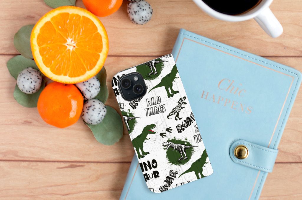 Ook zo gek op alles met dinosaurussen te maken heeft? Dan mag dit hoesje met dino’s zeker niet ontbreken in jouw collectie! De skeletten, pootafdrukken en dino’s zorgen er hopelijk voor dat iedereen van jouw iPhone 15 afblijft! Dit toffe dino design wordt geprint op een Hoesje maken waarin je een pasje kwijt kunt. Vouw het hoesje om en zet het horizontaal neer voor als je graag filmpjes op je iPhone 15 kijkt. De magneten aan de binnenkant zorgen ervoor dat het hoesje dicht blijft in bijv. je tas. Bescherm je smartphone vandaag nog met dit gevaarlijke Dinosaurus design hoesje!