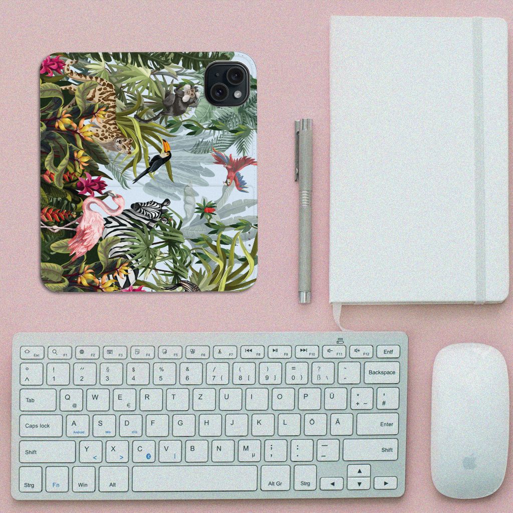 Ben je op zoek naar een tropische verrassing voor je iPhone 15? Dan is dit hoesje in jungle stijl zeker iets voor jou! Met de verschillende soorten dieren waan je je even in de jungle, vind je ook niet? Dit design wordt geprint op een Hoesje maken waarin je een pasje kwijt kunt. Vouw het hoesje om en zet het horizontaal neer voor als je graag filmpjes op je iPhone 15 kijkt. De magneten aan de binnenkant zorgen ervoor dat het hoesje dicht blijft in bijv. je tas. Bescherm jouw smartphone vandaag nog met dit stoere jungle design hoesje!