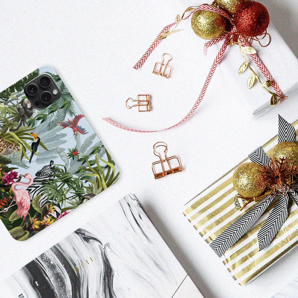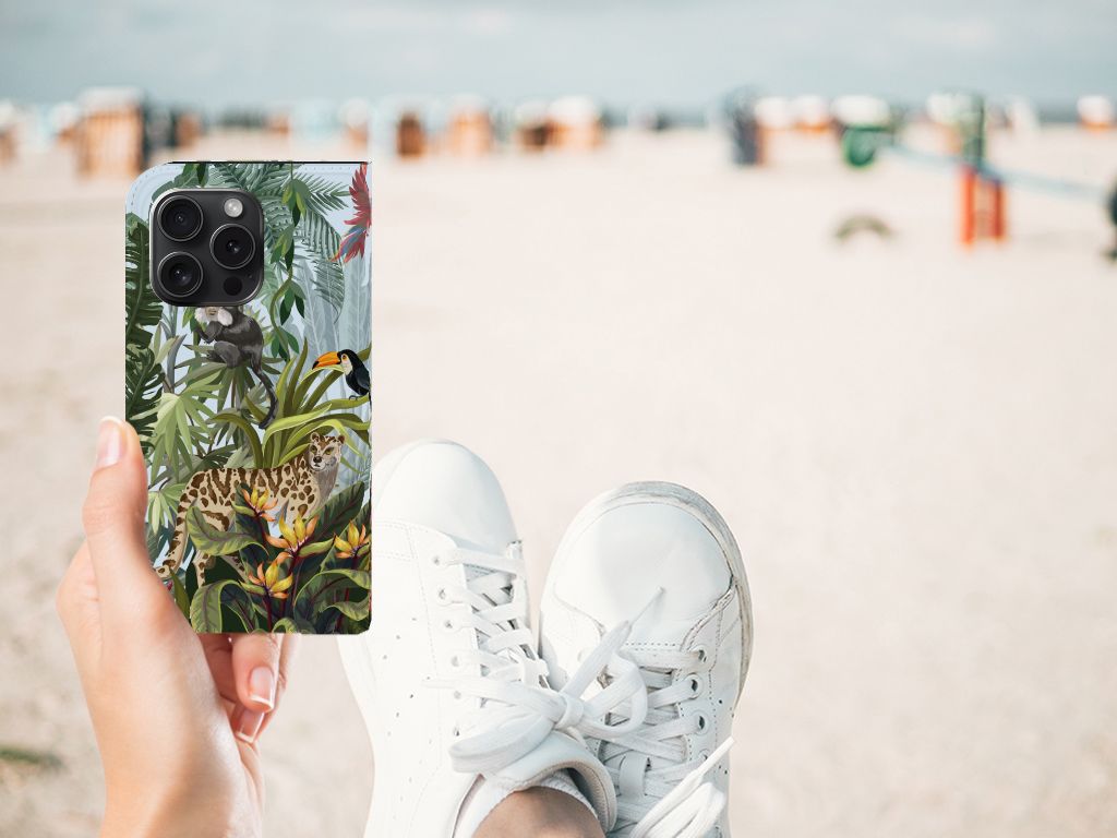 Ben je op zoek naar een tropische verrassing voor je iPhone 15 Pro? Dan is dit hoesje in jungle stijl zeker iets voor jou! Met de verschillende soorten dieren waan je je even in de jungle, vind je ook niet? Dit design wordt geprint op een Hoesje maken waarin je een pasje kwijt kunt. Vouw het hoesje om en zet het horizontaal neer voor als je graag filmpjes op je iPhone 15 Pro kijkt. De magneten aan de binnenkant zorgen ervoor dat het hoesje dicht blijft in bijv. je tas. Bescherm jouw smartphone vandaag nog met dit stoere jungle design hoesje!