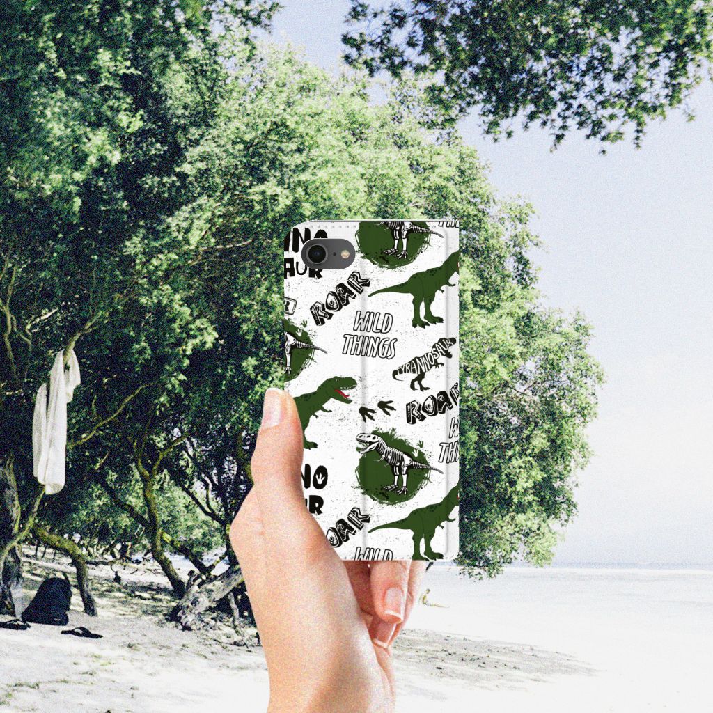 Ook zo gek op alles met dinosaurussen te maken heeft? Dan mag dit hoesje met dino’s zeker niet ontbreken in jouw collectie! De skeletten, pootafdrukken en dino’s zorgen er hopelijk voor dat iedereen van jouw iPhone 7 | 8 | SE (2020) | SE (2022) afblijft! Dit toffe dino design wordt geprint op een Hoesje maken waarin je een pasje kwijt kunt. Vouw het hoesje om en zet het horizontaal neer voor als je graag filmpjes op je iPhone 7 | 8 | SE (2020) | SE (2022) kijkt. De magneten aan de binnenkant zorgen ervoor dat het hoesje dicht blijft in bijv. je tas. Bescherm je smartphone vandaag nog met dit gevaarlijke Dinosaurus design hoesje!