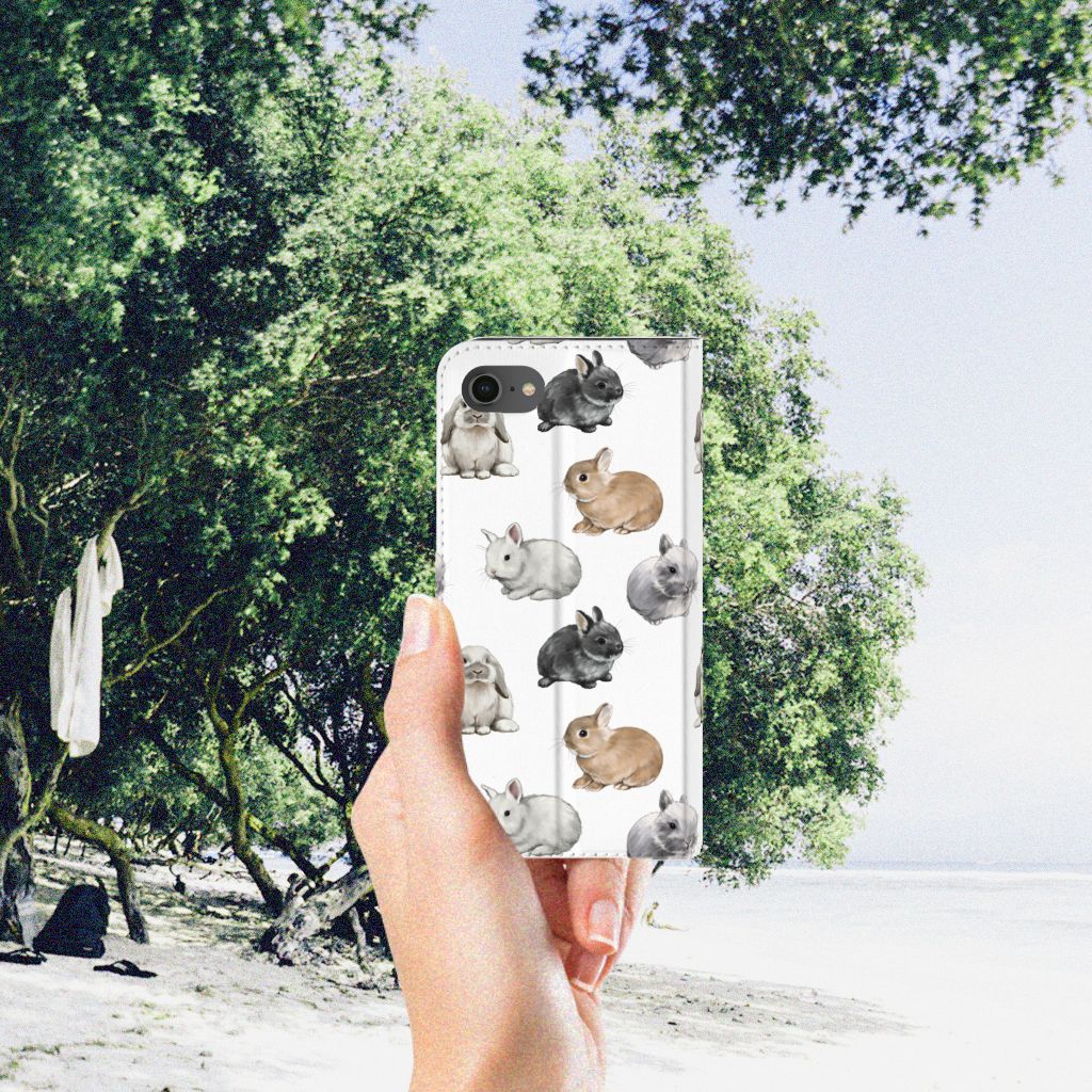 Wist je dat er wel 50 verschillende konijnenrassen zijn die zich onderscheiden in kleur, vacht, bouw en formaat? Daarom kon dit design met konijntjes eigenlijk niet ontbreken in onze collectie hoesjes. Wij zijn in ieder geval helemaal verliefd op deze schattige konijntjes. Dit design wordt geprint op een Hoesje maken speciaal op maat gemaakt voor de iPhone 7 | 8 | SE (2020) | SE (2022). In dit hoesje kun je een pasje kwijt, super fijn toch? Vouw het hoesje om en zet het horizontaal neer voor als je graag filmpjes op je iPhone 7 | 8 | SE (2020) | SE (2022) kijkt. De magneten aan de binnenkant zorgen ervoor dat het hoesje dicht blijft in bijv. je tas. Bescherm jouw smartphone vandaag nog met dit super schattige hoesje met konijntjes!