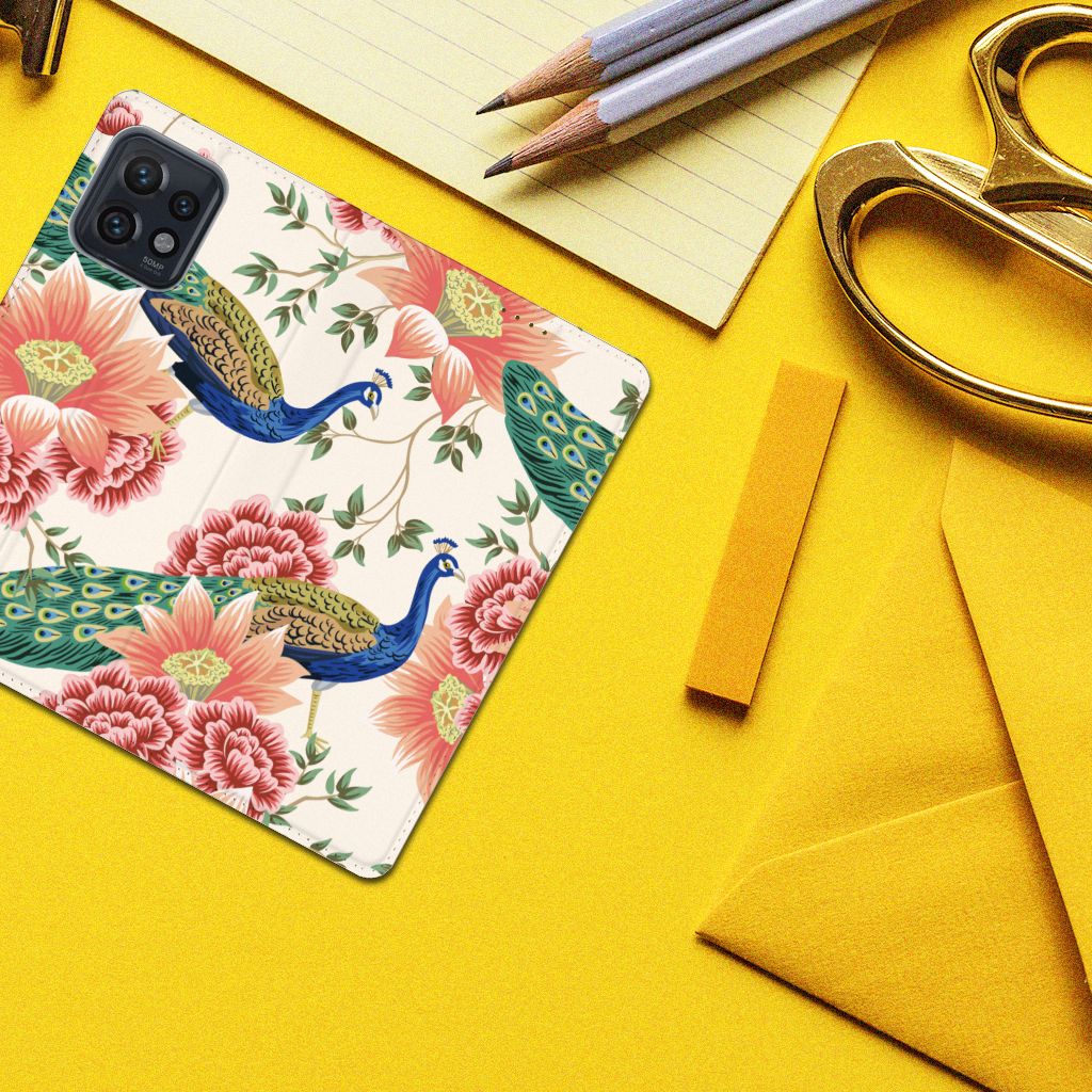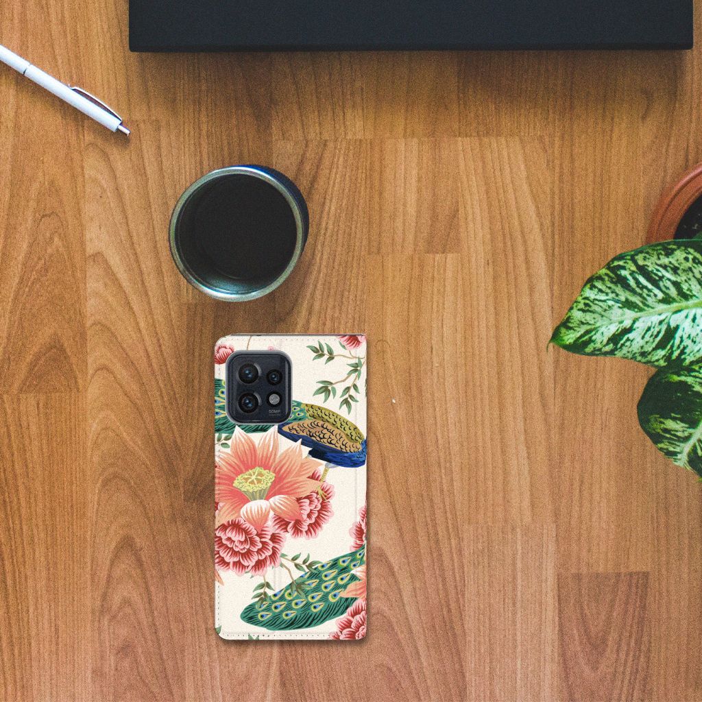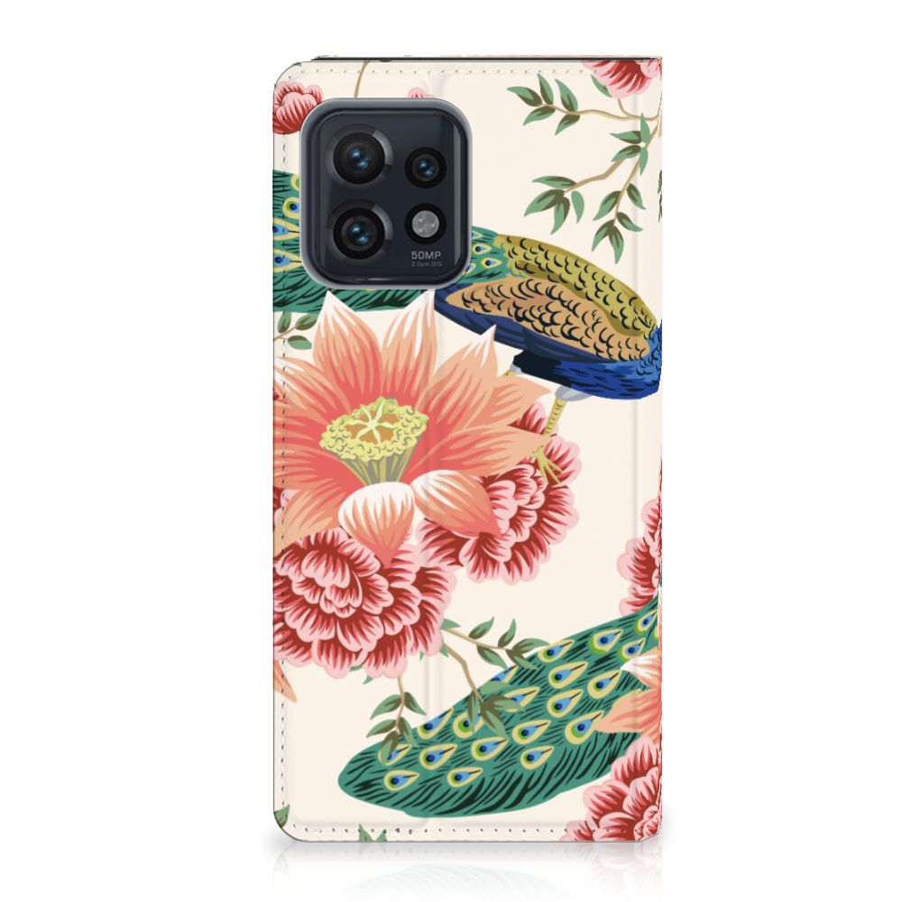 Motorola Edge 40 Pro Telefoonhoesje met Pasjes Pauw met Bloemen