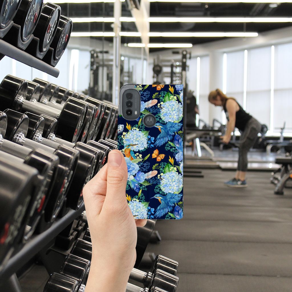 Wist je dat een ijsvogel ook wel vaak ‘’blauwe flits’’ wordt genoemd? Vliegend en jagend halen ze snelheden tot 80 k/m uur, waardoor je ze bijna niet ziet zitten. Onze ijsvogel blijft gelukkig wel zitten tussen de bloemen. Dit ijsvogel design wordt geprint op een Hoesje maken speciaal op maat gemaakt voor de Motorola Moto E20. In dit hoesje kun je een pasje kwijt, super fijn toch? Vouw het hoesje om en zet het horizontaal neer voor als je graag filmpjes op je Motorola Moto E20 kijkt. De magneten aan de binnenkant zorgen ervoor dat het hoesje dicht blijft in bijv. je tas. Bescherm jouw smartphone vandaag nog met dit prachtige ijsvogel hoesje!