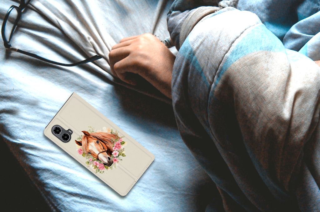 Toen we in 2014 begonnen met het bedrukken van telefoonhoesjes, was een van de eerste designs eentje met paarden erop. Nu zoveel jaar later is dit een van onze populairste hoesjes voor zowel jong als oud. Vandaar dat we nog een design toevoegen aan onze collectie met een paard erop, hopelijk wordt dit design net zo geliefd! Het design wordt geprint op een Hoesje maken speciaal op maat gemaakt voor de Motorola Moto G34. In dit hoesje kun je een pasje kwijt, super fijn toch? Vouw het hoesje om en zet het horizontaal neer voor als je graag filmpjes op je Motorola Moto G34 kijkt. De magneten aan de binnenkant zorgen ervoor dat het hoesje dicht blijft in bijv. je tas. Bescherm jouw smartphone vandaag nog met dit mooie design hoesje!
