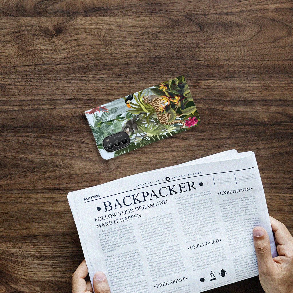 Ben je op zoek naar een tropische verrassing voor je Motorola Moto G52 | Moto G82? Dan is dit hoesje in jungle stijl zeker iets voor jou! Met de verschillende soorten dieren waan je je even in de jungle, vind je ook niet? Dit design wordt geprint op een Hoesje maken waarin je een pasje kwijt kunt. Vouw het hoesje om en zet het horizontaal neer voor als je graag filmpjes op je Motorola Moto G52 | Moto G82 kijkt. De magneten aan de binnenkant zorgen ervoor dat het hoesje dicht blijft in bijv. je tas. Bescherm jouw smartphone vandaag nog met dit stoere jungle design hoesje!