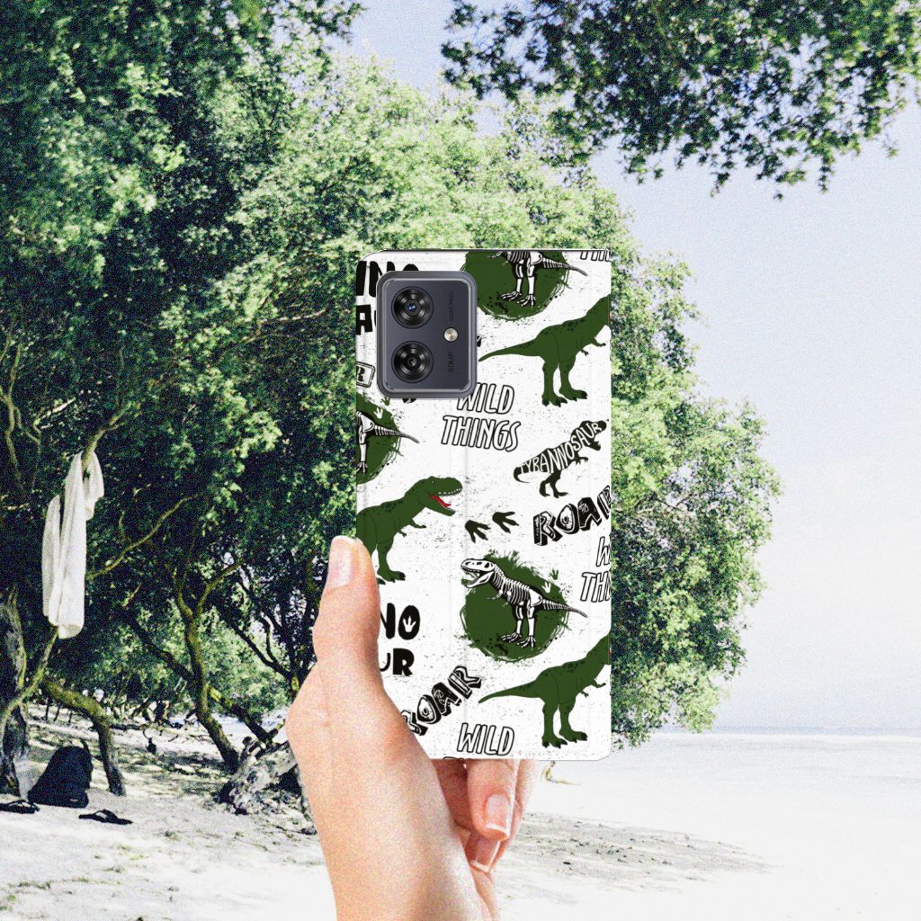 Ook zo gek op alles met dinosaurussen te maken heeft? Dan mag dit hoesje met dino’s zeker niet ontbreken in jouw collectie! De skeletten, pootafdrukken en dino’s zorgen er hopelijk voor dat iedereen van jouw Motorola Moto G54 afblijft! Dit toffe dino design wordt geprint op een Hoesje maken waarin je een pasje kwijt kunt. Vouw het hoesje om en zet het horizontaal neer voor als je graag filmpjes op je Motorola Moto G54 kijkt. De magneten aan de binnenkant zorgen ervoor dat het hoesje dicht blijft in bijv. je tas. Bescherm je smartphone vandaag nog met dit gevaarlijke Dinosaurus design hoesje!