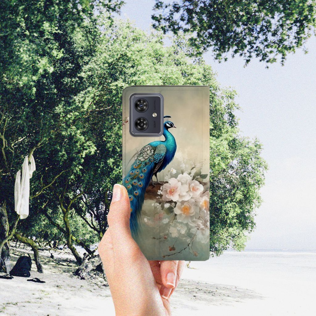 Wist je dat de sleep van pauwen bestaat uit wel 150 kleurige veren? Als de haan zijn sleep opzet om een vrouwtje te veroveren dan zie je deze veren het duidelijkst. Er zijn mensen die geloven dat een pauwenveer geluk brengt! Daarom mag dit romantische vintage pauwen design zeker niet ontbreken in onze collectie. Het blijven toch echt prachtige en fascinerende dieren om te zien! Dit design wordt geprint op een Hoesje maken speciaal op maat gemaakt voor de Motorola Moto G54. In dit hoesje kun je een pasje kwijt, super fijn toch? Vouw het hoesje om en zet het horizontaal neer voor als je graag filmpjes op je Motorola Moto G54 kijkt. De magneten aan de binnenkant zorgen ervoor dat het hoesje dicht blijft in bijv. je tas. Bescherm jouw smartphone vandaag nog met dit romantische pauwen design hoesje!