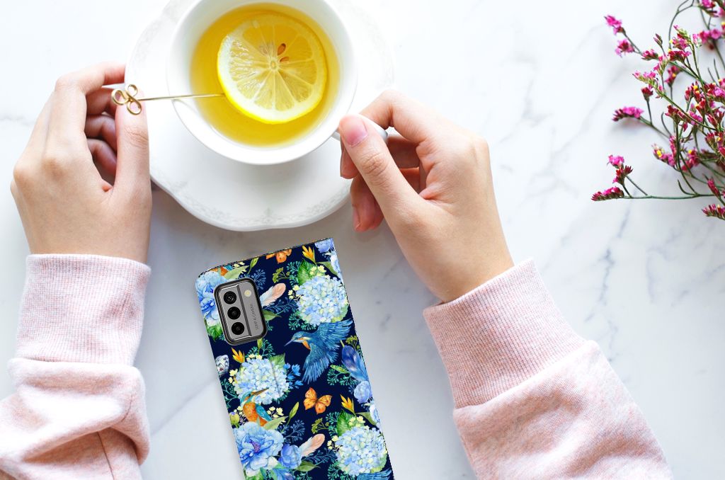 Wist je dat een ijsvogel ook wel vaak ‘’blauwe flits’’ wordt genoemd? Vliegend en jagend halen ze snelheden tot 80 k/m uur, waardoor je ze bijna niet ziet zitten. Onze ijsvogel blijft gelukkig wel zitten tussen de bloemen. Dit ijsvogel design wordt geprint op een Hoesje maken speciaal op maat gemaakt voor de Nokia G22. In dit hoesje kun je een pasje kwijt, super fijn toch? Vouw het hoesje om en zet het horizontaal neer voor als je graag filmpjes op je Nokia G22 kijkt. De magneten aan de binnenkant zorgen ervoor dat het hoesje dicht blijft in bijv. je tas. Bescherm jouw smartphone vandaag nog met dit prachtige ijsvogel hoesje!