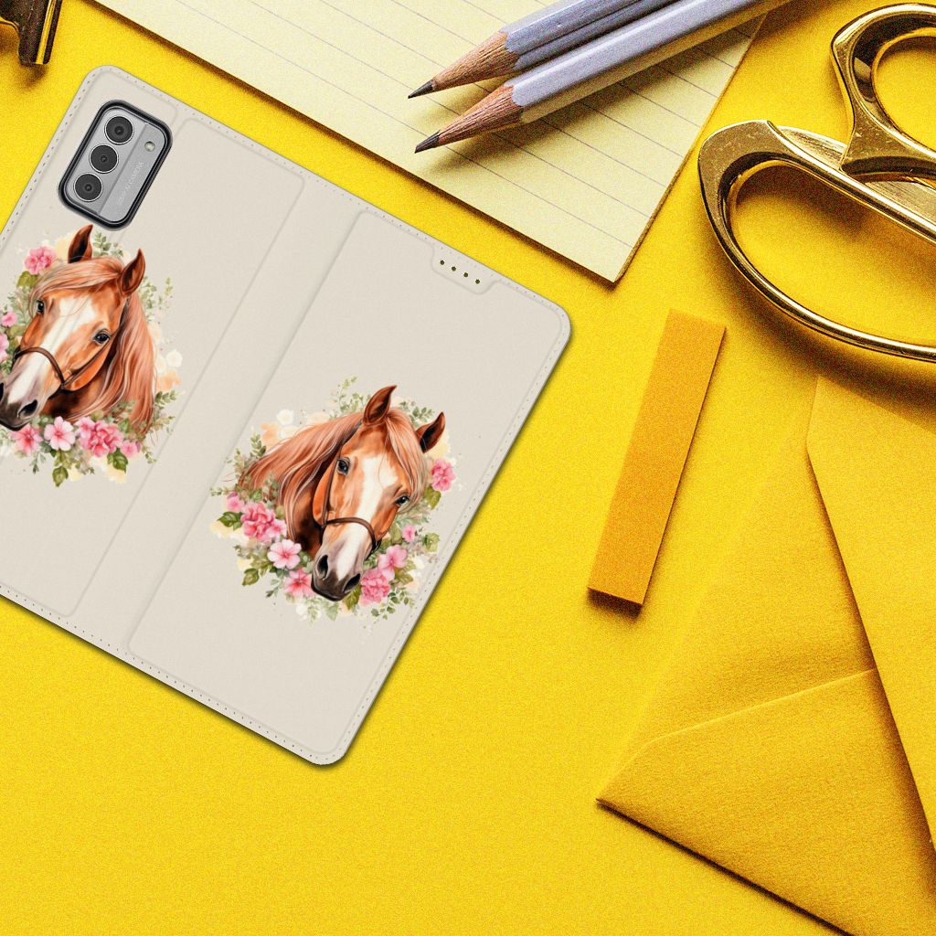 Toen we in 2014 begonnen met het bedrukken van telefoonhoesjes, was een van de eerste designs eentje met paarden erop. Nu zoveel jaar later is dit een van onze populairste hoesjes voor zowel jong als oud. Vandaar dat we nog een design toevoegen aan onze collectie met een paard erop, hopelijk wordt dit design net zo geliefd! Het design wordt geprint op een Hoesje maken speciaal op maat gemaakt voor de Nokia G42. In dit hoesje kun je een pasje kwijt, super fijn toch? Vouw het hoesje om en zet het horizontaal neer voor als je graag filmpjes op je Nokia G42 kijkt. De magneten aan de binnenkant zorgen ervoor dat het hoesje dicht blijft in bijv. je tas. Bescherm jouw smartphone vandaag nog met dit mooie design hoesje!