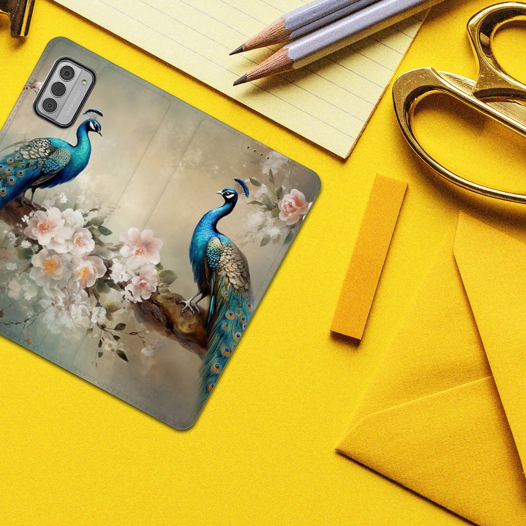 Wist je dat de sleep van pauwen bestaat uit wel 150 kleurige veren? Als de haan zijn sleep opzet om een vrouwtje te veroveren dan zie je deze veren het duidelijkst. Er zijn mensen die geloven dat een pauwenveer geluk brengt! Daarom mag dit romantische vintage pauwen design zeker niet ontbreken in onze collectie. Het blijven toch echt prachtige en fascinerende dieren om te zien! Dit design wordt geprint op een Hoesje maken speciaal op maat gemaakt voor de Nokia G42. In dit hoesje kun je een pasje kwijt, super fijn toch? Vouw het hoesje om en zet het horizontaal neer voor als je graag filmpjes op je Nokia G42 kijkt. De magneten aan de binnenkant zorgen ervoor dat het hoesje dicht blijft in bijv. je tas. Bescherm jouw smartphone vandaag nog met dit romantische pauwen design hoesje!