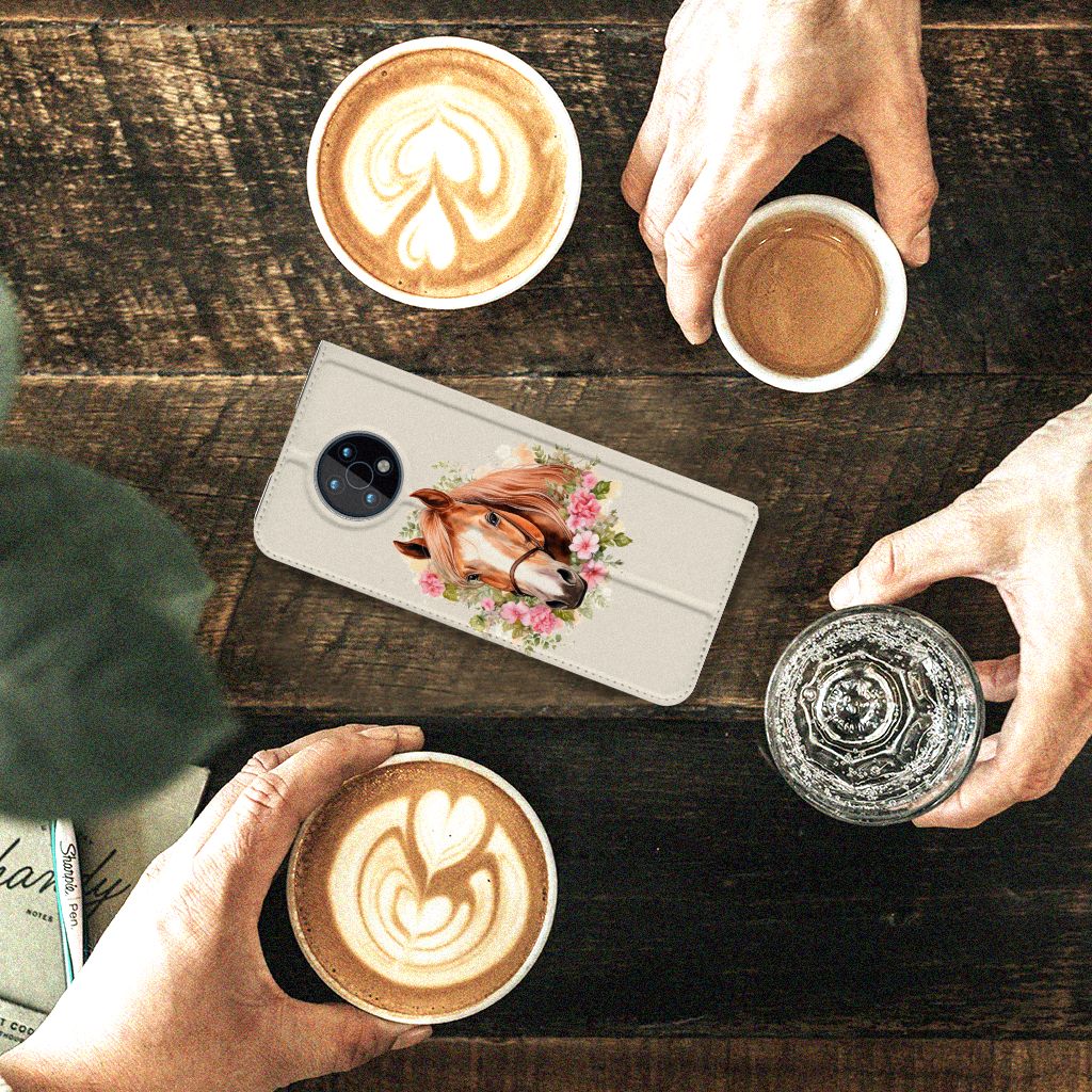 Toen we in 2014 begonnen met het bedrukken van telefoonhoesjes, was een van de eerste designs eentje met paarden erop. Nu zoveel jaar later is dit een van onze populairste hoesjes voor zowel jong als oud. Vandaar dat we nog een design toevoegen aan onze collectie met een paard erop, hopelijk wordt dit design net zo geliefd! Het design wordt geprint op een Hoesje maken speciaal op maat gemaakt voor de Nokia G50. In dit hoesje kun je een pasje kwijt, super fijn toch? Vouw het hoesje om en zet het horizontaal neer voor als je graag filmpjes op je Nokia G50 kijkt. De magneten aan de binnenkant zorgen ervoor dat het hoesje dicht blijft in bijv. je tas. Bescherm jouw smartphone vandaag nog met dit mooie design hoesje!
