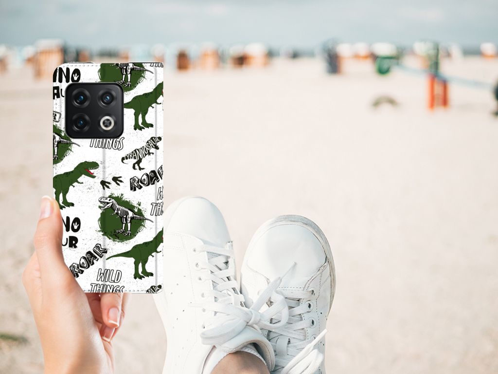 Ook zo gek op alles met dinosaurussen te maken heeft? Dan mag dit hoesje met dino’s zeker niet ontbreken in jouw collectie! De skeletten, pootafdrukken en dino’s zorgen er hopelijk voor dat iedereen van jouw OnePlus 10 Pro afblijft! Dit toffe dino design wordt geprint op een Hoesje maken waarin je een pasje kwijt kunt. Vouw het hoesje om en zet het horizontaal neer voor als je graag filmpjes op je OnePlus 10 Pro kijkt. De magneten aan de binnenkant zorgen ervoor dat het hoesje dicht blijft in bijv. je tas. Bescherm je smartphone vandaag nog met dit gevaarlijke Dinosaurus design hoesje!