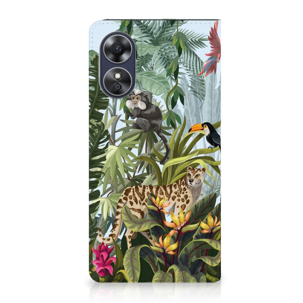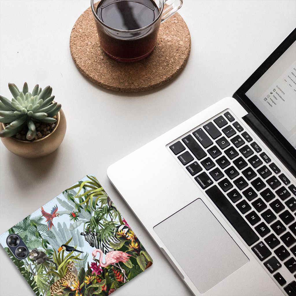 Ben je op zoek naar een tropische verrassing voor je OPPO A17? Dan is dit hoesje in jungle stijl zeker iets voor jou! Met de verschillende soorten dieren waan je je even in de jungle, vind je ook niet? Dit design wordt geprint op een Hoesje maken waarin je een pasje kwijt kunt. Vouw het hoesje om en zet het horizontaal neer voor als je graag filmpjes op je OPPO A17 kijkt. De magneten aan de binnenkant zorgen ervoor dat het hoesje dicht blijft in bijv. je tas. Bescherm jouw smartphone vandaag nog met dit stoere jungle design hoesje!