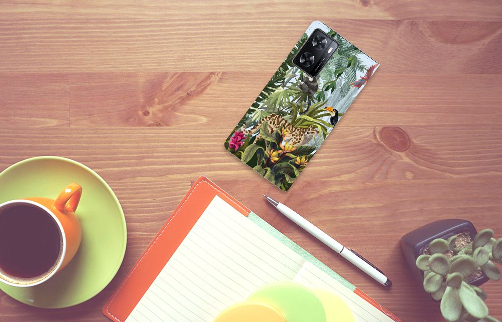 Ben je op zoek naar een tropische verrassing voor je OPPO A57 | A57s | A77 4G? Dan is dit hoesje in jungle stijl zeker iets voor jou! Met de verschillende soorten dieren waan je je even in de jungle, vind je ook niet? Dit design wordt geprint op een Hoesje maken waarin je een pasje kwijt kunt. Vouw het hoesje om en zet het horizontaal neer voor als je graag filmpjes op je OPPO A57 | A57s | A77 4G kijkt. De magneten aan de binnenkant zorgen ervoor dat het hoesje dicht blijft in bijv. je tas. Bescherm jouw smartphone vandaag nog met dit stoere jungle design hoesje!