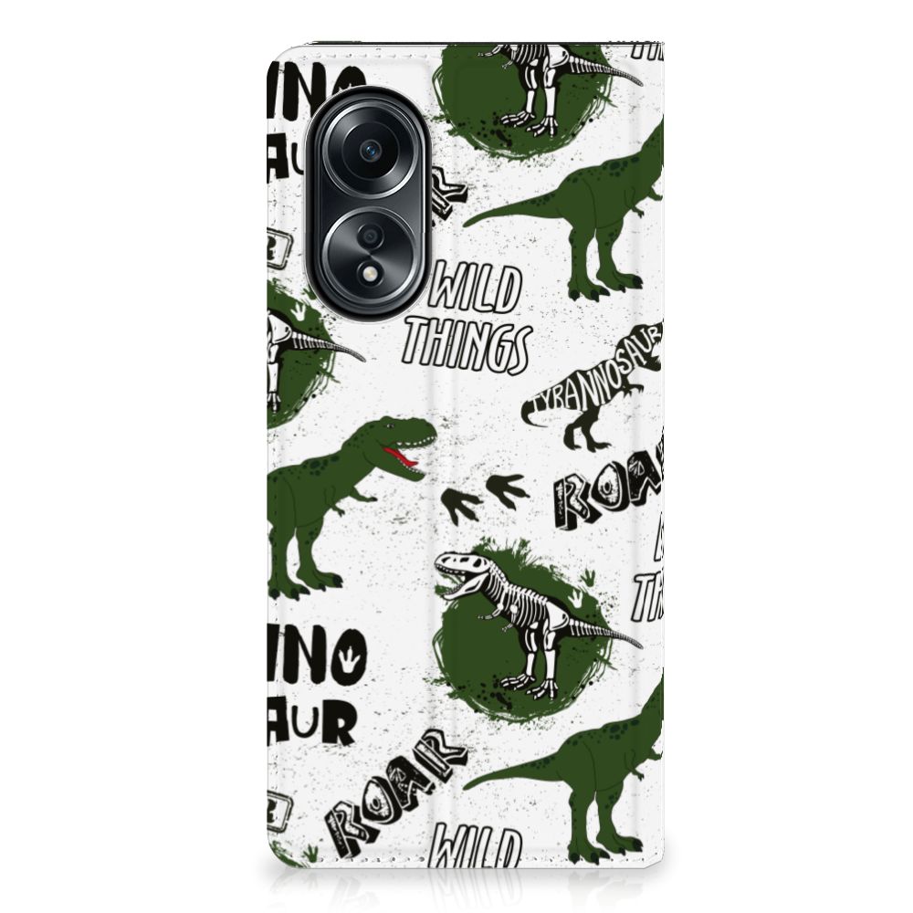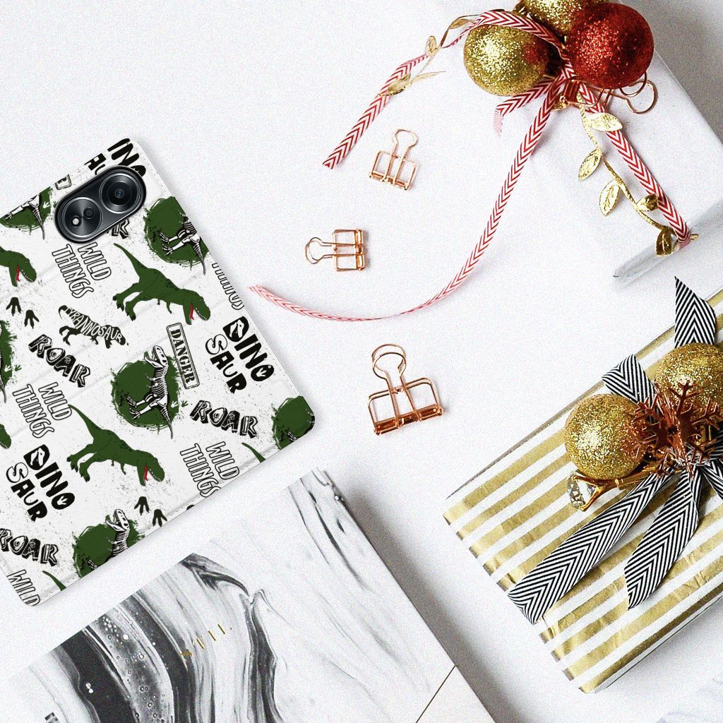 Ook zo gek op alles met dinosaurussen te maken heeft? Dan mag dit hoesje met dino’s zeker niet ontbreken in jouw collectie! De skeletten, pootafdrukken en dino’s zorgen er hopelijk voor dat iedereen van jouw OPPO A58 4G afblijft! Dit toffe dino design wordt geprint op een Hoesje maken waarin je een pasje kwijt kunt. Vouw het hoesje om en zet het horizontaal neer voor als je graag filmpjes op je OPPO A58 4G kijkt. De magneten aan de binnenkant zorgen ervoor dat het hoesje dicht blijft in bijv. je tas. Bescherm je smartphone vandaag nog met dit gevaarlijke Dinosaurus design hoesje!