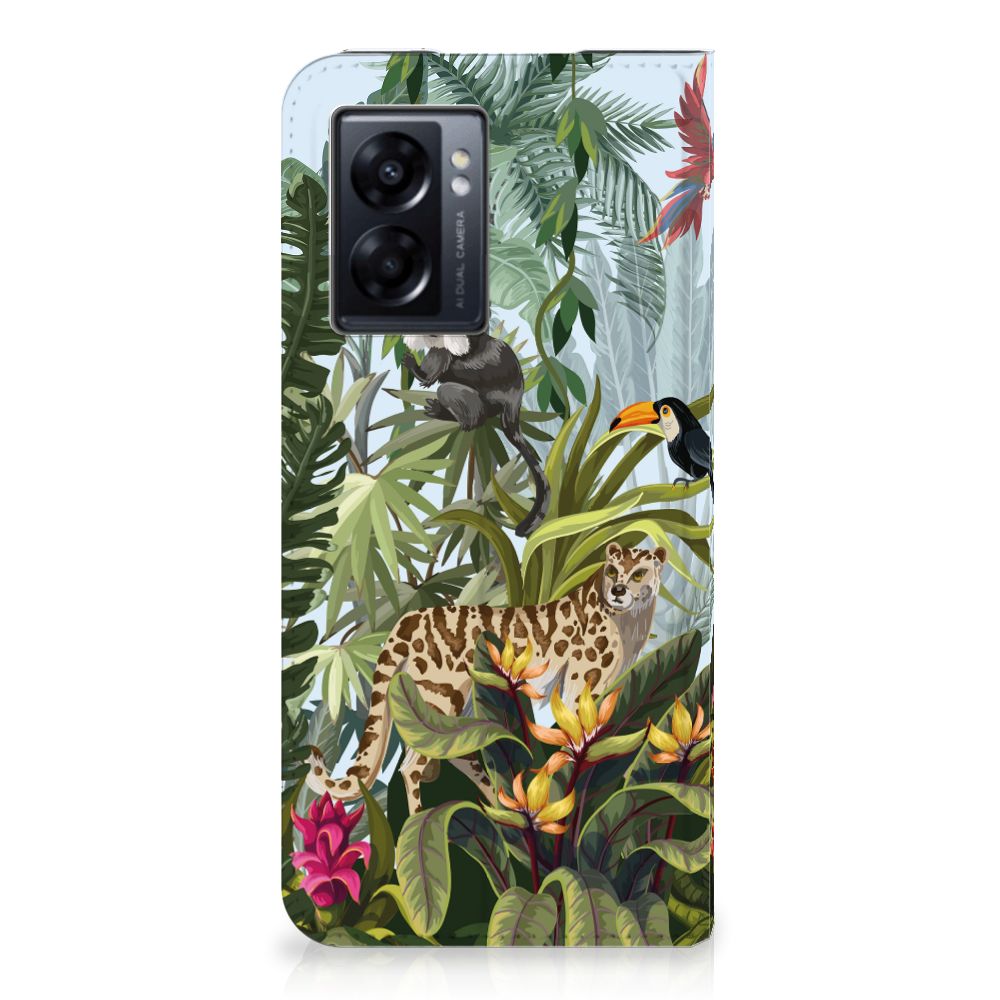 Ben je op zoek naar een tropische verrassing voor je OPPO A77 5G | A57 5G? Dan is dit hoesje in jungle stijl zeker iets voor jou! Met de verschillende soorten dieren waan je je even in de jungle, vind je ook niet? Dit design wordt geprint op een Hoesje maken waarin je een pasje kwijt kunt. Vouw het hoesje om en zet het horizontaal neer voor als je graag filmpjes op je OPPO A77 5G | A57 5G kijkt. De magneten aan de binnenkant zorgen ervoor dat het hoesje dicht blijft in bijv. je tas. Bescherm jouw smartphone vandaag nog met dit stoere jungle design hoesje!