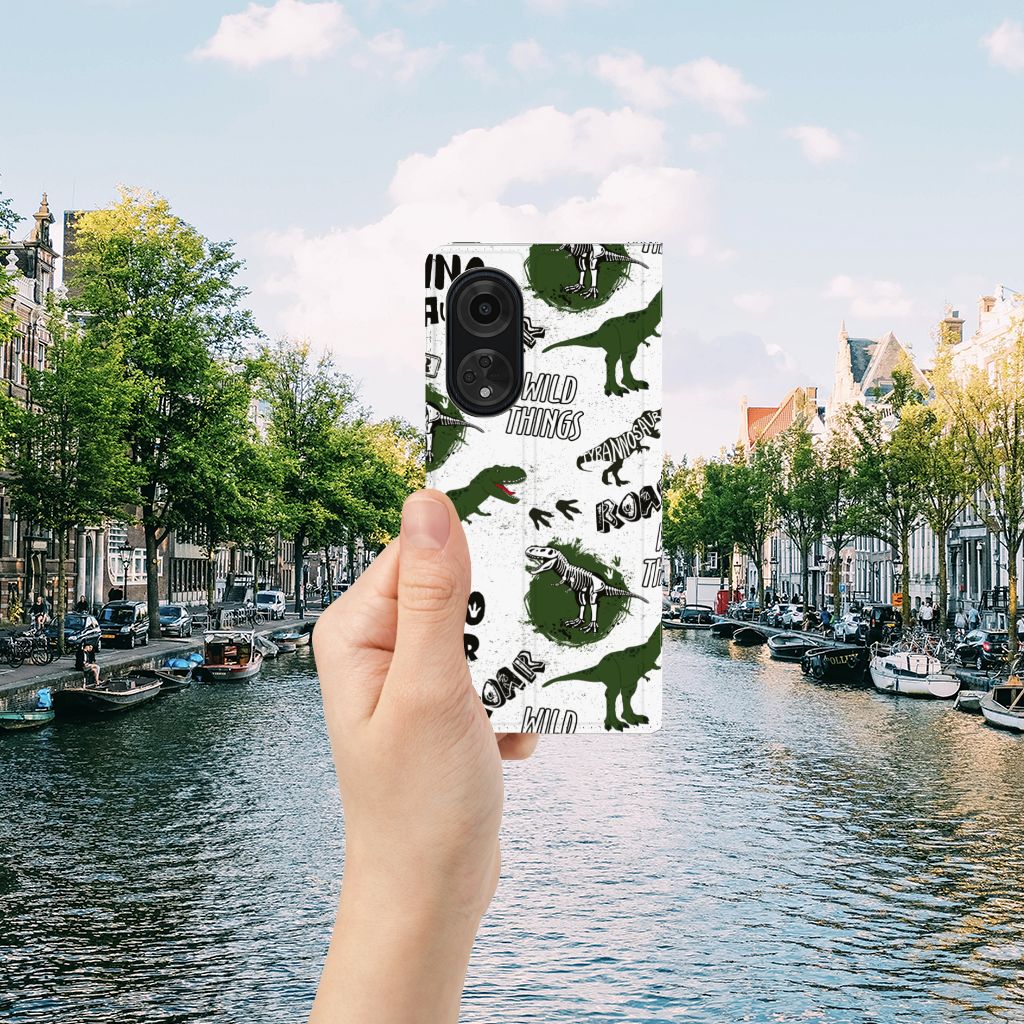 Ook zo gek op alles met dinosaurussen te maken heeft? Dan mag dit hoesje met dino’s zeker niet ontbreken in jouw collectie! De skeletten, pootafdrukken en dino’s zorgen er hopelijk voor dat iedereen van jouw OPPO A98 5G afblijft! Dit toffe dino design wordt geprint op een Hoesje maken waarin je een pasje kwijt kunt. Vouw het hoesje om en zet het horizontaal neer voor als je graag filmpjes op je OPPO A98 5G kijkt. De magneten aan de binnenkant zorgen ervoor dat het hoesje dicht blijft in bijv. je tas. Bescherm je smartphone vandaag nog met dit gevaarlijke Dinosaurus design hoesje!