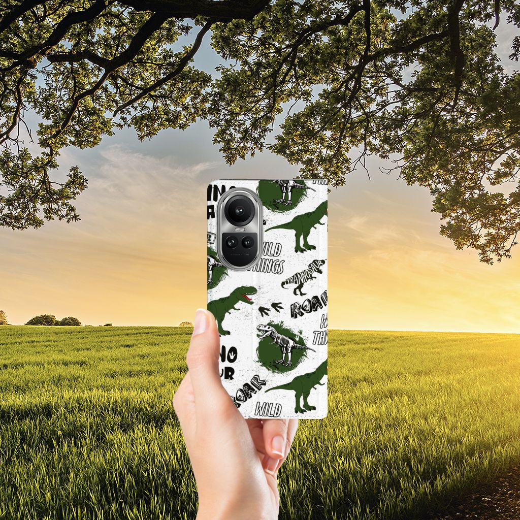 Ook zo gek op alles met dinosaurussen te maken heeft? Dan mag dit hoesje met dino’s zeker niet ontbreken in jouw collectie! De skeletten, pootafdrukken en dino’s zorgen er hopelijk voor dat iedereen van jouw OPPO Reno10 | 10 Pro afblijft! Dit toffe dino design wordt geprint op een Hoesje maken waarin je een pasje kwijt kunt. Vouw het hoesje om en zet het horizontaal neer voor als je graag filmpjes op je OPPO Reno10 | 10 Pro kijkt. De magneten aan de binnenkant zorgen ervoor dat het hoesje dicht blijft in bijv. je tas. Bescherm je smartphone vandaag nog met dit gevaarlijke Dinosaurus design hoesje!