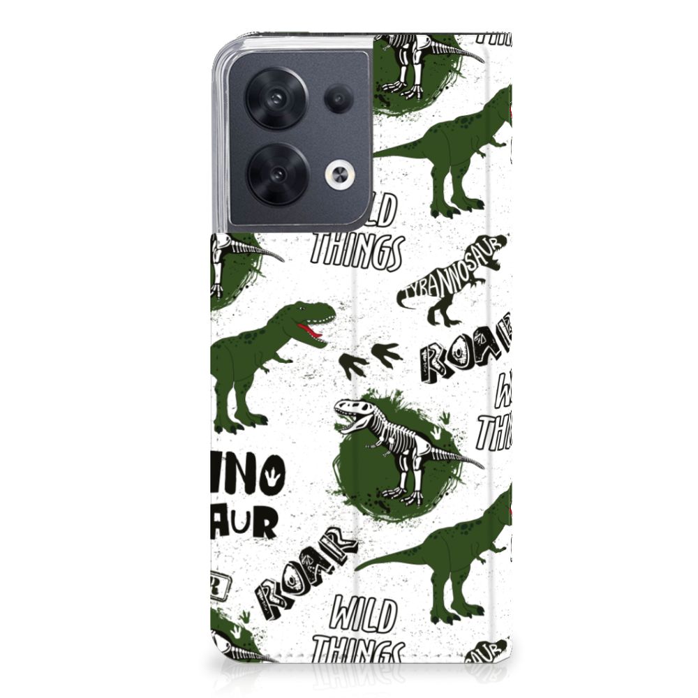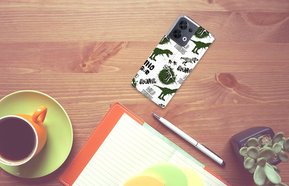 Ook zo gek op alles met dinosaurussen te maken heeft? Dan mag dit hoesje met dino’s zeker niet ontbreken in jouw collectie! De skeletten, pootafdrukken en dino’s zorgen er hopelijk voor dat iedereen van jouw OPPO Reno8 afblijft! Dit toffe dino design wordt geprint op een Hoesje maken waarin je een pasje kwijt kunt. Vouw het hoesje om en zet het horizontaal neer voor als je graag filmpjes op je OPPO Reno8 kijkt. De magneten aan de binnenkant zorgen ervoor dat het hoesje dicht blijft in bijv. je tas. Bescherm je smartphone vandaag nog met dit gevaarlijke Dinosaurus design hoesje!