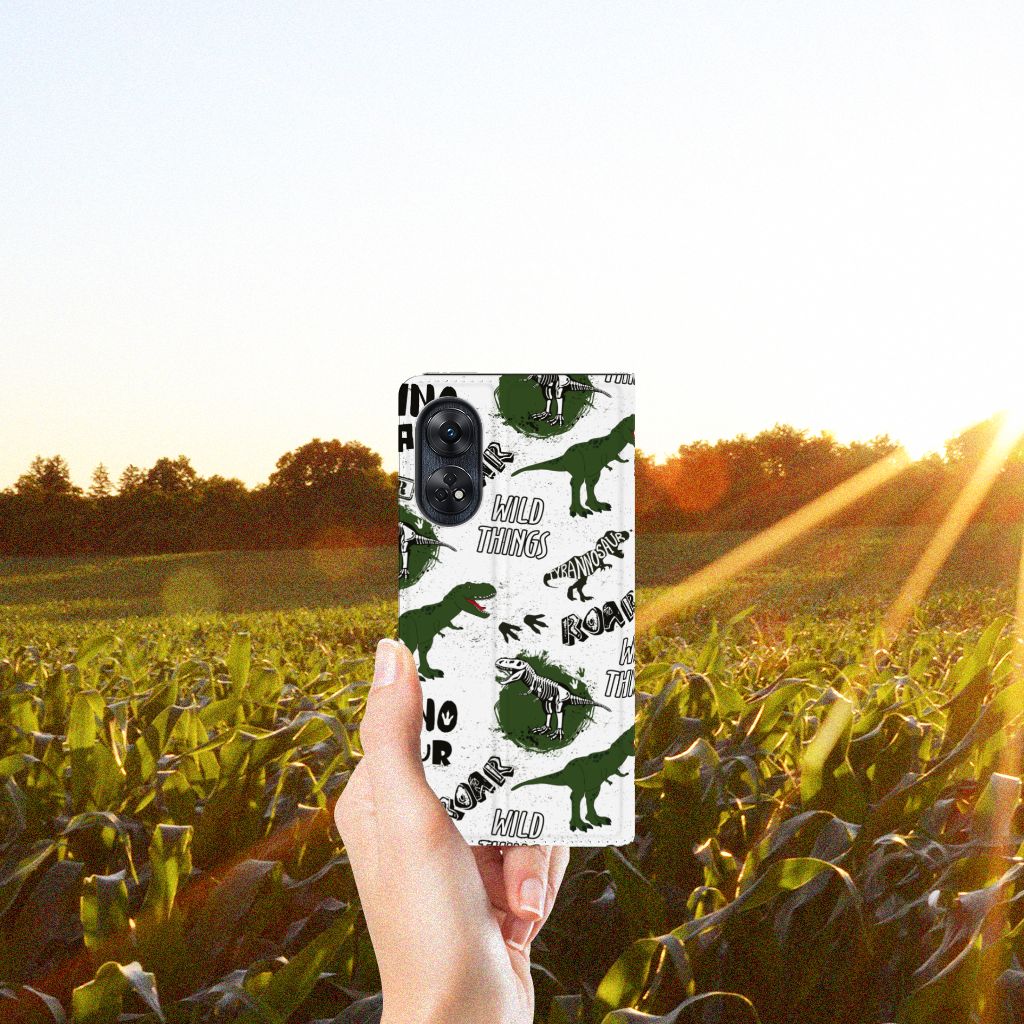 Ook zo gek op alles met dinosaurussen te maken heeft? Dan mag dit hoesje met dino’s zeker niet ontbreken in jouw collectie! De skeletten, pootafdrukken en dino’s zorgen er hopelijk voor dat iedereen van jouw OPPO Reno8 T 4G afblijft! Dit toffe dino design wordt geprint op een Hoesje maken waarin je een pasje kwijt kunt. Vouw het hoesje om en zet het horizontaal neer voor als je graag filmpjes op je OPPO Reno8 T 4G kijkt. De magneten aan de binnenkant zorgen ervoor dat het hoesje dicht blijft in bijv. je tas. Bescherm je smartphone vandaag nog met dit gevaarlijke Dinosaurus design hoesje!
