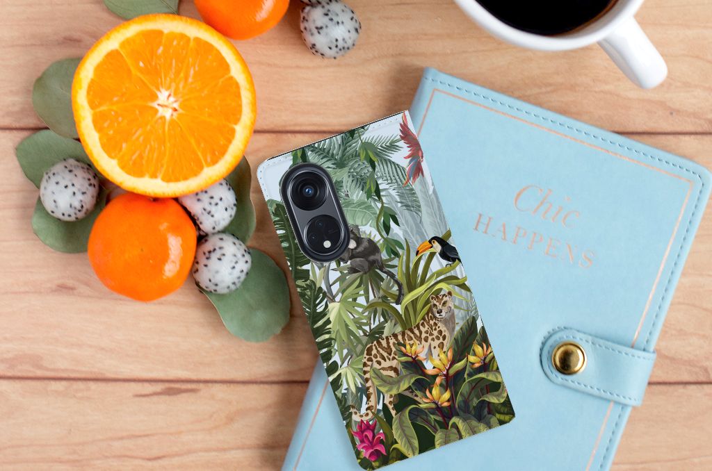 Ben je op zoek naar een tropische verrassing voor je OPPO Reno8 T 5G? Dan is dit hoesje in jungle stijl zeker iets voor jou! Met de verschillende soorten dieren waan je je even in de jungle, vind je ook niet? Dit design wordt geprint op een Hoesje maken waarin je een pasje kwijt kunt. Vouw het hoesje om en zet het horizontaal neer voor als je graag filmpjes op je OPPO Reno8 T 5G kijkt. De magneten aan de binnenkant zorgen ervoor dat het hoesje dicht blijft in bijv. je tas. Bescherm jouw smartphone vandaag nog met dit stoere jungle design hoesje!