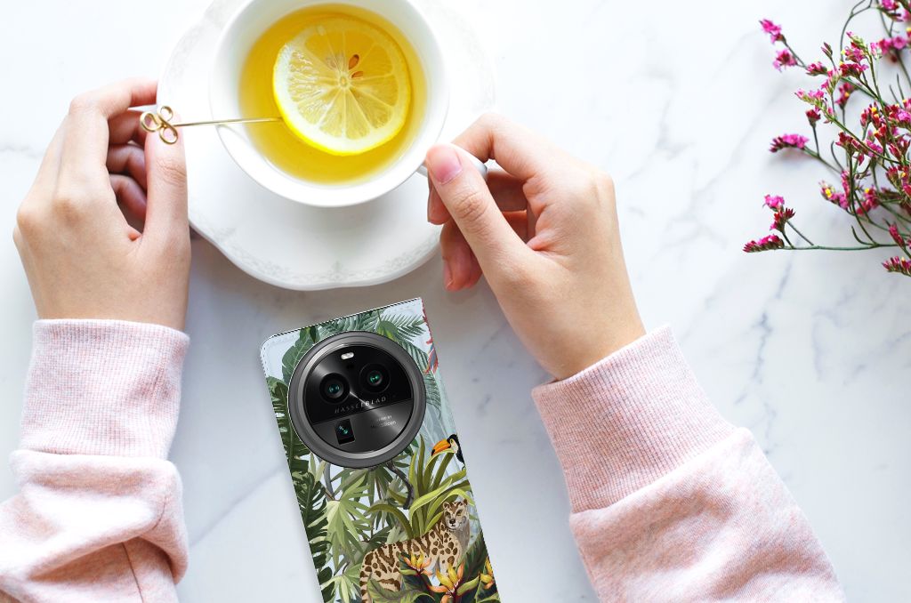 Ben je op zoek naar een tropische verrassing voor je OPPO X6 Pro? Dan is dit hoesje in jungle stijl zeker iets voor jou! Met de verschillende soorten dieren waan je je even in de jungle, vind je ook niet? Dit design wordt geprint op een Hoesje maken waarin je een pasje kwijt kunt. Vouw het hoesje om en zet het horizontaal neer voor als je graag filmpjes op je OPPO X6 Pro kijkt. De magneten aan de binnenkant zorgen ervoor dat het hoesje dicht blijft in bijv. je tas. Bescherm jouw smartphone vandaag nog met dit stoere jungle design hoesje!
