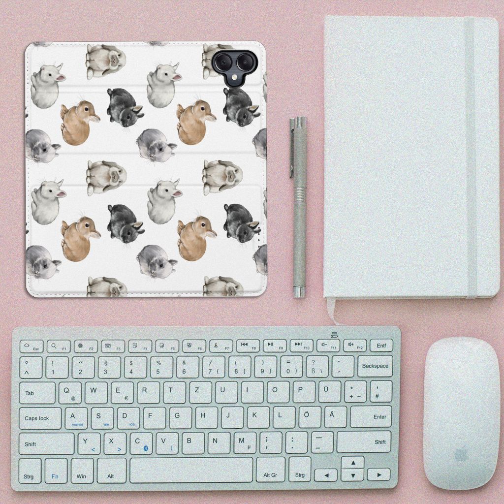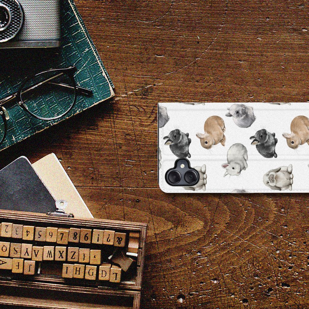 Wist je dat er wel 50 verschillende konijnenrassen zijn die zich onderscheiden in kleur, vacht, bouw en formaat? Daarom kon dit design met konijntjes eigenlijk niet ontbreken in onze collectie hoesjes. Wij zijn in ieder geval helemaal verliefd op deze schattige konijntjes. Dit design wordt geprint op een Hoesje maken speciaal op maat gemaakt voor de Samsung Galaxy A05. In dit hoesje kun je een pasje kwijt, super fijn toch? Vouw het hoesje om en zet het horizontaal neer voor als je graag filmpjes op je Samsung Galaxy A05 kijkt. De magneten aan de binnenkant zorgen ervoor dat het hoesje dicht blijft in bijv. je tas. Bescherm jouw smartphone vandaag nog met dit super schattige hoesje met konijntjes!