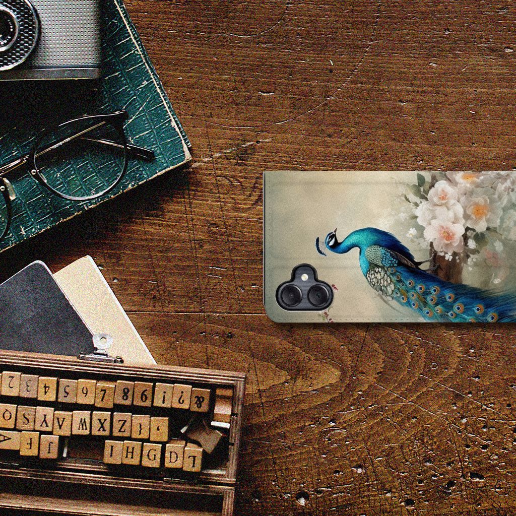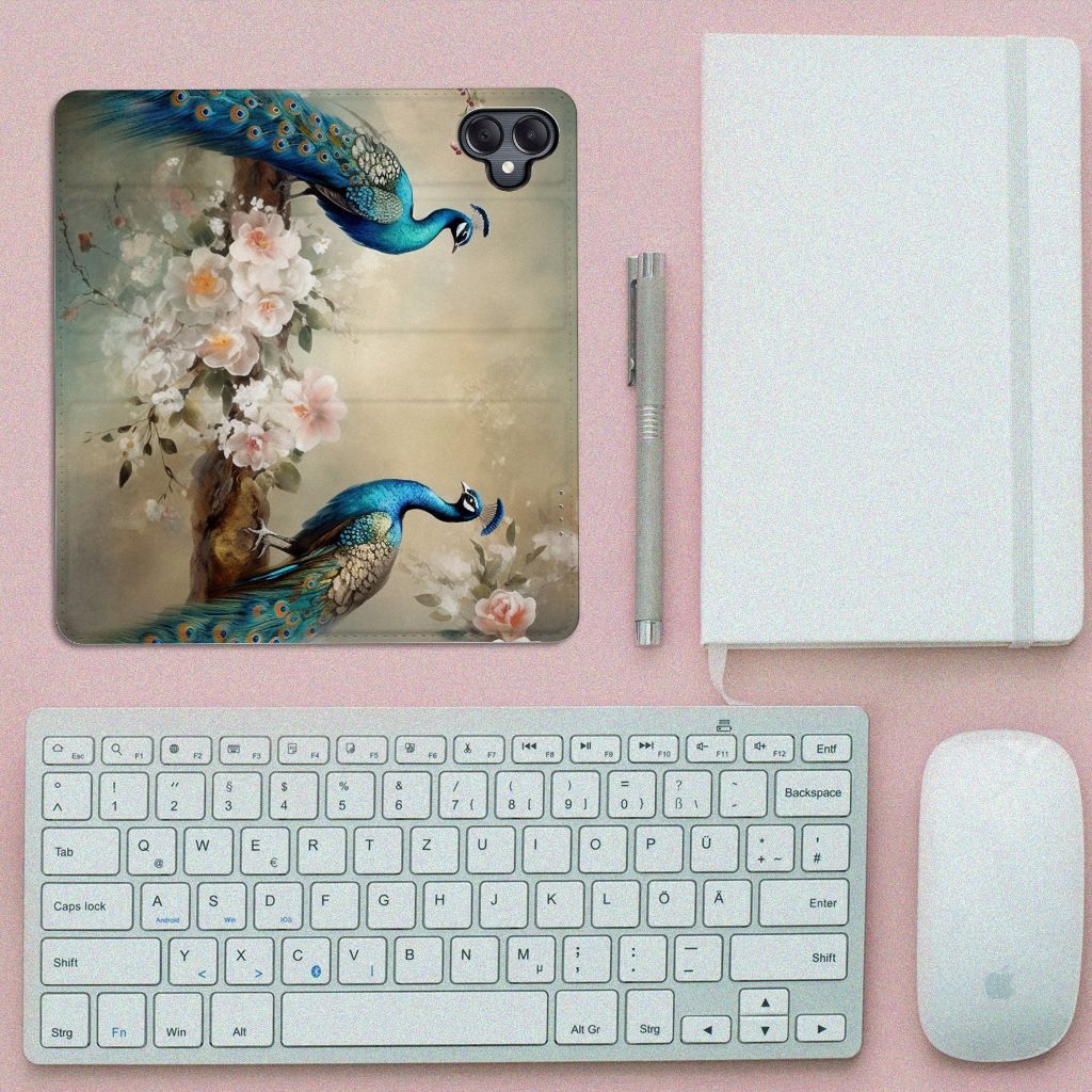 Wist je dat de sleep van pauwen bestaat uit wel 150 kleurige veren? Als de haan zijn sleep opzet om een vrouwtje te veroveren dan zie je deze veren het duidelijkst. Er zijn mensen die geloven dat een pauwenveer geluk brengt! Daarom mag dit romantische vintage pauwen design zeker niet ontbreken in onze collectie. Het blijven toch echt prachtige en fascinerende dieren om te zien! Dit design wordt geprint op een Hoesje maken speciaal op maat gemaakt voor de Samsung Galaxy A05. In dit hoesje kun je een pasje kwijt, super fijn toch? Vouw het hoesje om en zet het horizontaal neer voor als je graag filmpjes op je Samsung Galaxy A05 kijkt. De magneten aan de binnenkant zorgen ervoor dat het hoesje dicht blijft in bijv. je tas. Bescherm jouw smartphone vandaag nog met dit romantische pauwen design hoesje!