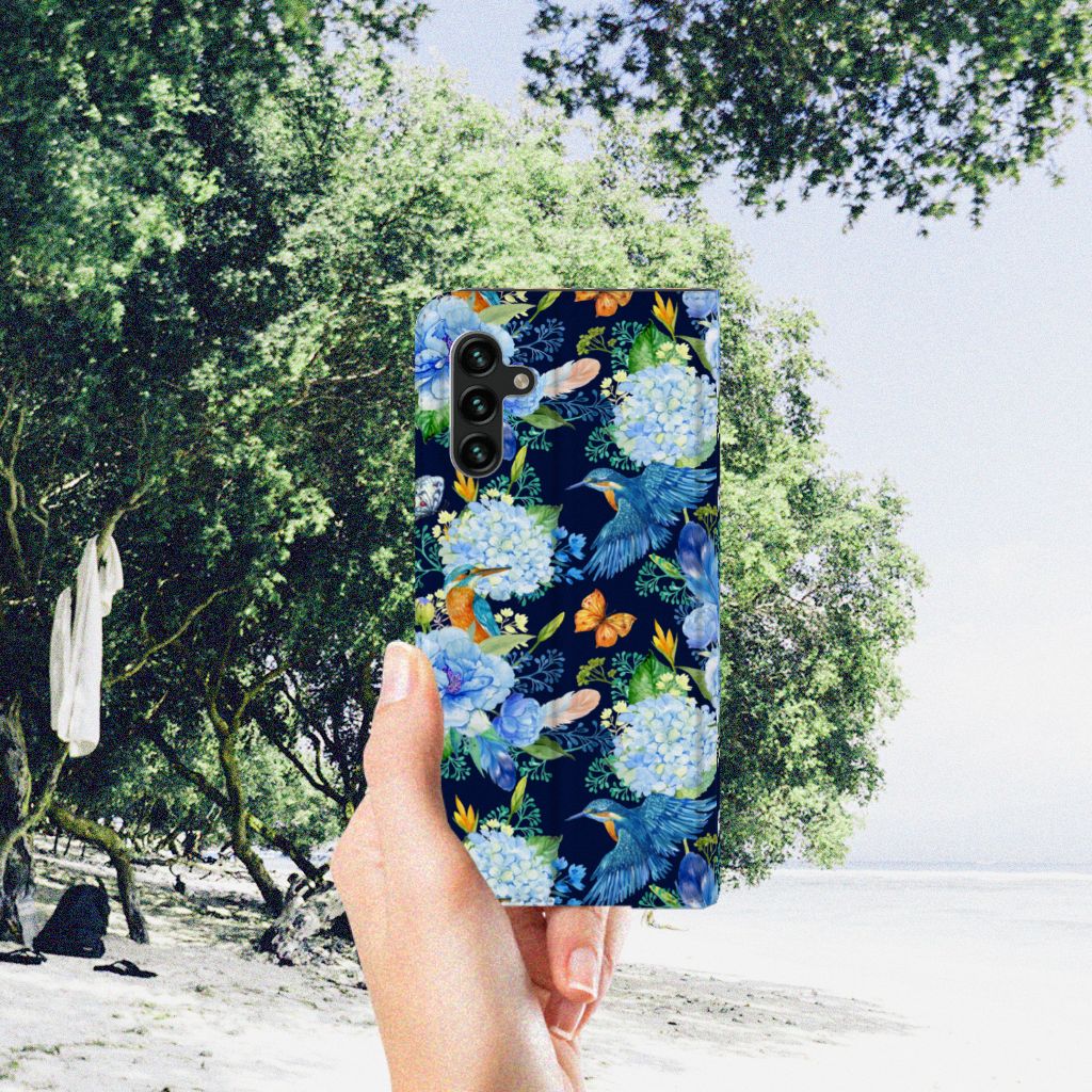 Wist je dat een ijsvogel ook wel vaak ‘’blauwe flits’’ wordt genoemd? Vliegend en jagend halen ze snelheden tot 80 k/m uur, waardoor je ze bijna niet ziet zitten. Onze ijsvogel blijft gelukkig wel zitten tussen de bloemen. Dit ijsvogel design wordt geprint op een Hoesje maken speciaal op maat gemaakt voor de Samsung Galaxy A13 (5G) | Samsung Galaxy A04s. In dit hoesje kun je een pasje kwijt, super fijn toch? Vouw het hoesje om en zet het horizontaal neer voor als je graag filmpjes op je Samsung Galaxy A13 (5G) | Samsung Galaxy A04s kijkt. De magneten aan de binnenkant zorgen ervoor dat het hoesje dicht blijft in bijv. je tas. Bescherm jouw smartphone vandaag nog met dit prachtige ijsvogel hoesje!