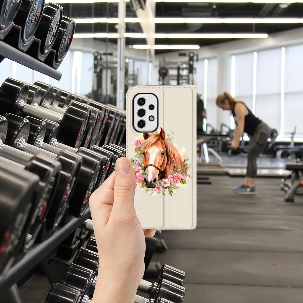 Toen we in 2014 begonnen met het bedrukken van telefoonhoesjes, was een van de eerste designs eentje met paarden erop. Nu zoveel jaar later is dit een van onze populairste hoesjes voor zowel jong als oud. Vandaar dat we nog een design toevoegen aan onze collectie met een paard erop, hopelijk wordt dit design net zo geliefd! Het design wordt geprint op een Hoesje maken speciaal op maat gemaakt voor de Samsung Galaxy A23. In dit hoesje kun je een pasje kwijt, super fijn toch? Vouw het hoesje om en zet het horizontaal neer voor als je graag filmpjes op je Samsung Galaxy A23 kijkt. De magneten aan de binnenkant zorgen ervoor dat het hoesje dicht blijft in bijv. je tas. Bescherm jouw smartphone vandaag nog met dit mooie design hoesje!