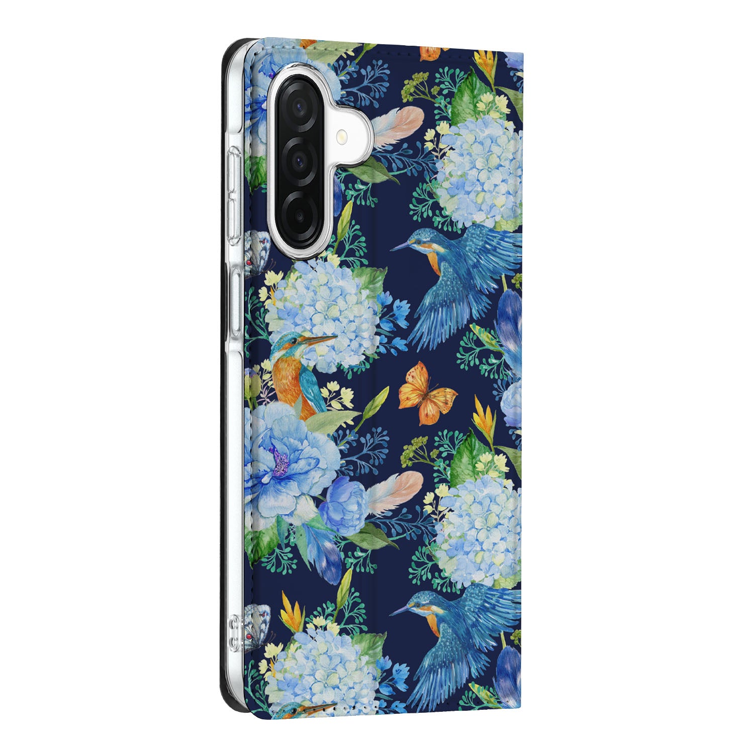 Wist je dat een ijsvogel ook wel vaak ‘’blauwe flits’’ wordt genoemd? Vliegend en jagend halen ze snelheden tot 80 k/m uur, waardoor je ze bijna niet ziet zitten. Onze ijsvogel blijft gelukkig wel zitten tussen de bloemen. Dit ijsvogel design wordt geprint op een Hoesje maken speciaal op maat gemaakt voor de Samsung Galaxy A26. In dit hoesje kun je een pasje kwijt, super fijn toch? Vouw het hoesje om en zet het horizontaal neer voor als je graag filmpjes op je Samsung Galaxy A26 kijkt. De magneten aan de binnenkant zorgen ervoor dat het hoesje dicht blijft in bijv. je tas. Bescherm jouw smartphone vandaag nog met dit prachtige ijsvogel hoesje!