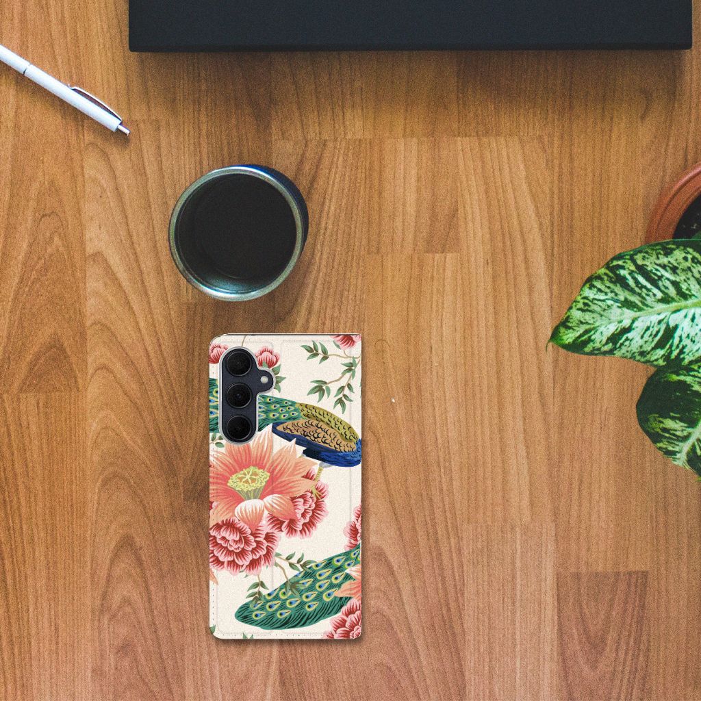 Telefoonhoesje met Pasjes voor Samsung Galaxy A35 Vintage Pauwen
