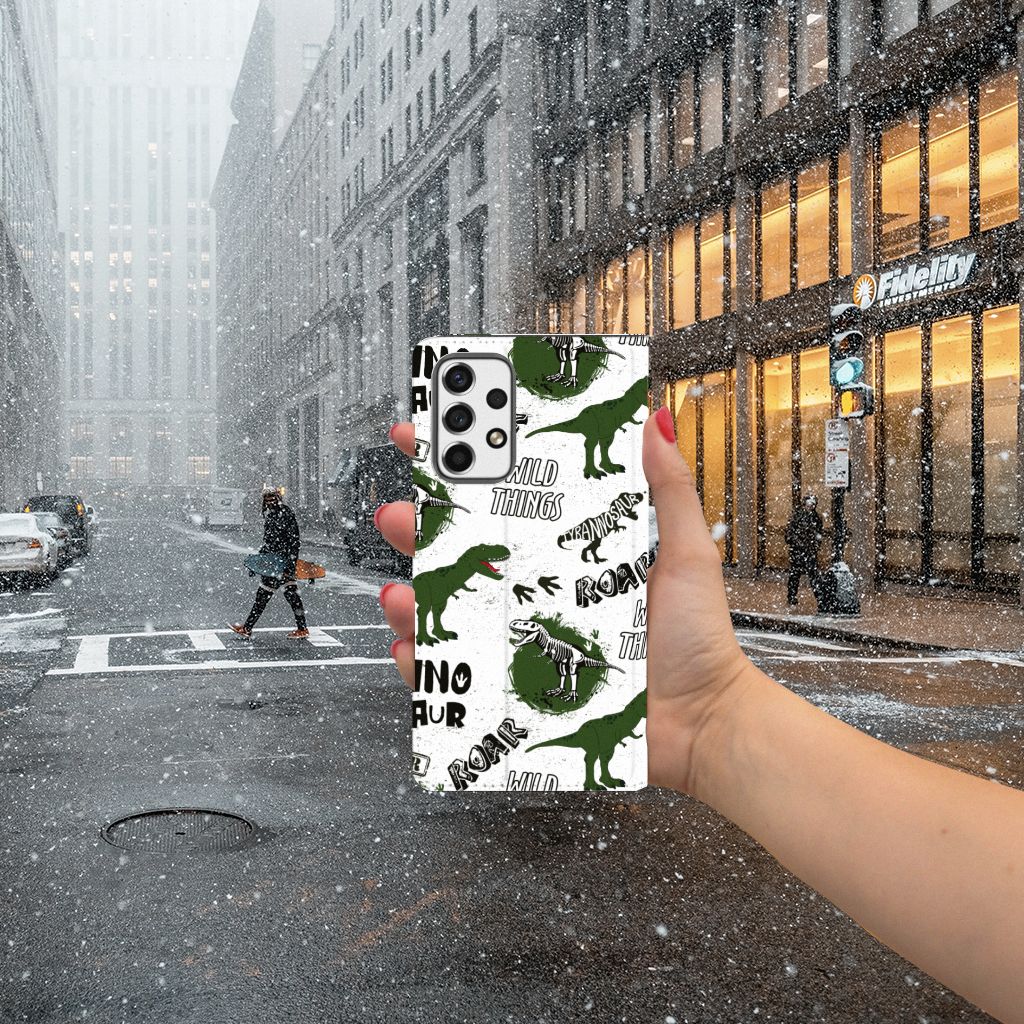 Ook zo gek op alles met dinosaurussen te maken heeft? Dan mag dit hoesje met dino’s zeker niet ontbreken in jouw collectie! De skeletten, pootafdrukken en dino’s zorgen er hopelijk voor dat iedereen van jouw Samsung Galaxy A53 afblijft! Dit toffe dino design wordt geprint op een Hoesje maken waarin je een pasje kwijt kunt. Vouw het hoesje om en zet het horizontaal neer voor als je graag filmpjes op je Samsung Galaxy A53 kijkt. De magneten aan de binnenkant zorgen ervoor dat het hoesje dicht blijft in bijv. je tas. Bescherm je smartphone vandaag nog met dit gevaarlijke Dinosaurus design hoesje!