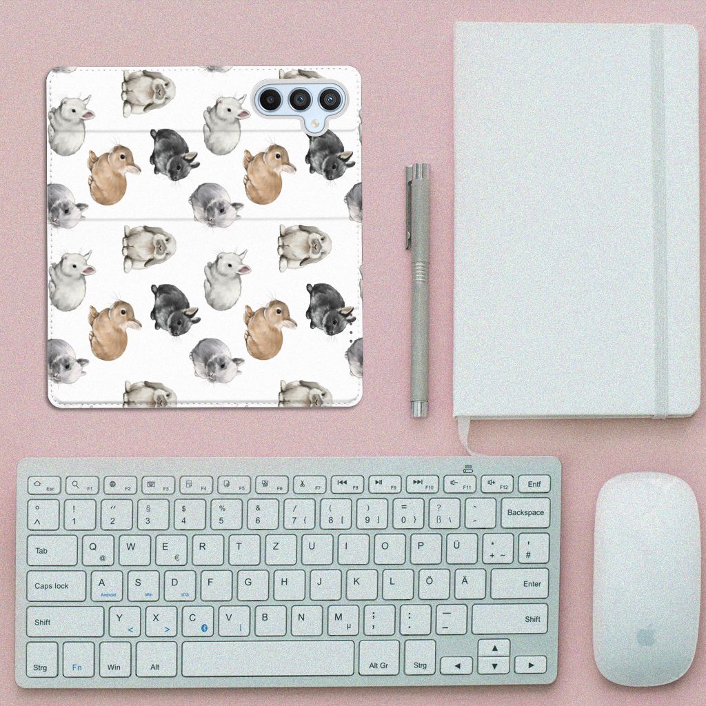 Wist je dat er wel 50 verschillende konijnenrassen zijn die zich onderscheiden in kleur, vacht, bouw en formaat? Daarom kon dit design met konijntjes eigenlijk niet ontbreken in onze collectie hoesjes. Wij zijn in ieder geval helemaal verliefd op deze schattige konijntjes. Dit design wordt geprint op een Hoesje maken speciaal op maat gemaakt voor de Samsung Galaxy A54. In dit hoesje kun je een pasje kwijt, super fijn toch? Vouw het hoesje om en zet het horizontaal neer voor als je graag filmpjes op je Samsung Galaxy A54 kijkt. De magneten aan de binnenkant zorgen ervoor dat het hoesje dicht blijft in bijv. je tas. Bescherm jouw smartphone vandaag nog met dit super schattige hoesje met konijntjes!