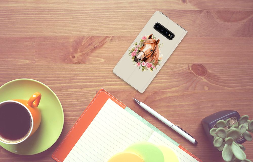 Toen we in 2014 begonnen met het bedrukken van telefoonhoesjes, was een van de eerste designs eentje met paarden erop. Nu zoveel jaar later is dit een van onze populairste hoesjes voor zowel jong als oud. Vandaar dat we nog een design toevoegen aan onze collectie met een paard erop, hopelijk wordt dit design net zo geliefd! Het design wordt geprint op een Hoesje maken speciaal op maat gemaakt voor de Samsung Galaxy S10 Plus. In dit hoesje kun je een pasje kwijt, super fijn toch? Vouw het hoesje om en zet het horizontaal neer voor als je graag filmpjes op je Samsung Galaxy S10 Plus kijkt. De magneten aan de binnenkant zorgen ervoor dat het hoesje dicht blijft in bijv. je tas. Bescherm jouw smartphone vandaag nog met dit mooie design hoesje!