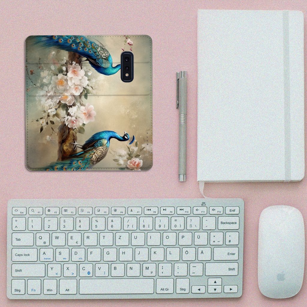 Wist je dat de sleep van pauwen bestaat uit wel 150 kleurige veren? Als de haan zijn sleep opzet om een vrouwtje te veroveren dan zie je deze veren het duidelijkst. Er zijn mensen die geloven dat een pauwenveer geluk brengt! Daarom mag dit romantische vintage pauwen design zeker niet ontbreken in onze collectie. Het blijven toch echt prachtige en fascinerende dieren om te zien! Dit design wordt geprint op een Hoesje maken speciaal op maat gemaakt voor de Samsung Galaxy S10e. In dit hoesje kun je een pasje kwijt, super fijn toch? Vouw het hoesje om en zet het horizontaal neer voor als je graag filmpjes op je Samsung Galaxy S10e kijkt. De magneten aan de binnenkant zorgen ervoor dat het hoesje dicht blijft in bijv. je tas. Bescherm jouw smartphone vandaag nog met dit romantische pauwen design hoesje!