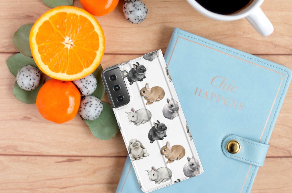 Wist je dat er wel 50 verschillende konijnenrassen zijn die zich onderscheiden in kleur, vacht, bouw en formaat? Daarom kon dit design met konijntjes eigenlijk niet ontbreken in onze collectie hoesjes. Wij zijn in ieder geval helemaal verliefd op deze schattige konijntjes. Dit design wordt geprint op een Hoesje maken speciaal op maat gemaakt voor de Samsung Galaxy S21 Plus. In dit hoesje kun je een pasje kwijt, super fijn toch? Vouw het hoesje om en zet het horizontaal neer voor als je graag filmpjes op je Samsung Galaxy S21 Plus kijkt. De magneten aan de binnenkant zorgen ervoor dat het hoesje dicht blijft in bijv. je tas. Bescherm jouw smartphone vandaag nog met dit super schattige hoesje met konijntjes!