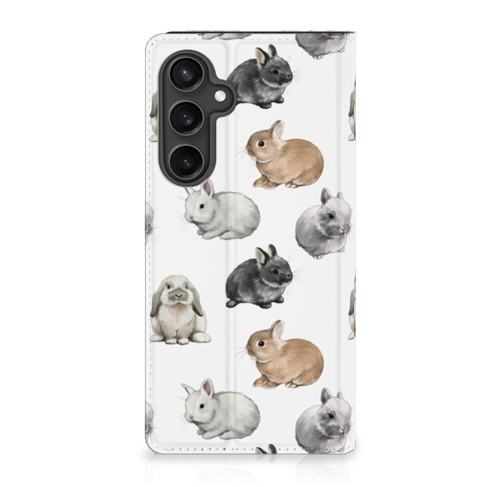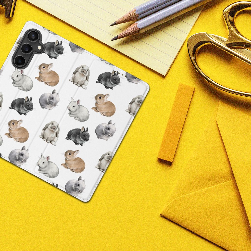 Wist je dat er wel 50 verschillende konijnenrassen zijn die zich onderscheiden in kleur, vacht, bouw en formaat? Daarom kon dit design met konijntjes eigenlijk niet ontbreken in onze collectie hoesjes. Wij zijn in ieder geval helemaal verliefd op deze schattige konijntjes. Dit design wordt geprint op een Hoesje maken speciaal op maat gemaakt voor de Samsung Galaxy S23 FE. In dit hoesje kun je een pasje kwijt, super fijn toch? Vouw het hoesje om en zet het horizontaal neer voor als je graag filmpjes op je Samsung Galaxy S23 FE kijkt. De magneten aan de binnenkant zorgen ervoor dat het hoesje dicht blijft in bijv. je tas. Bescherm jouw smartphone vandaag nog met dit super schattige hoesje met konijntjes!