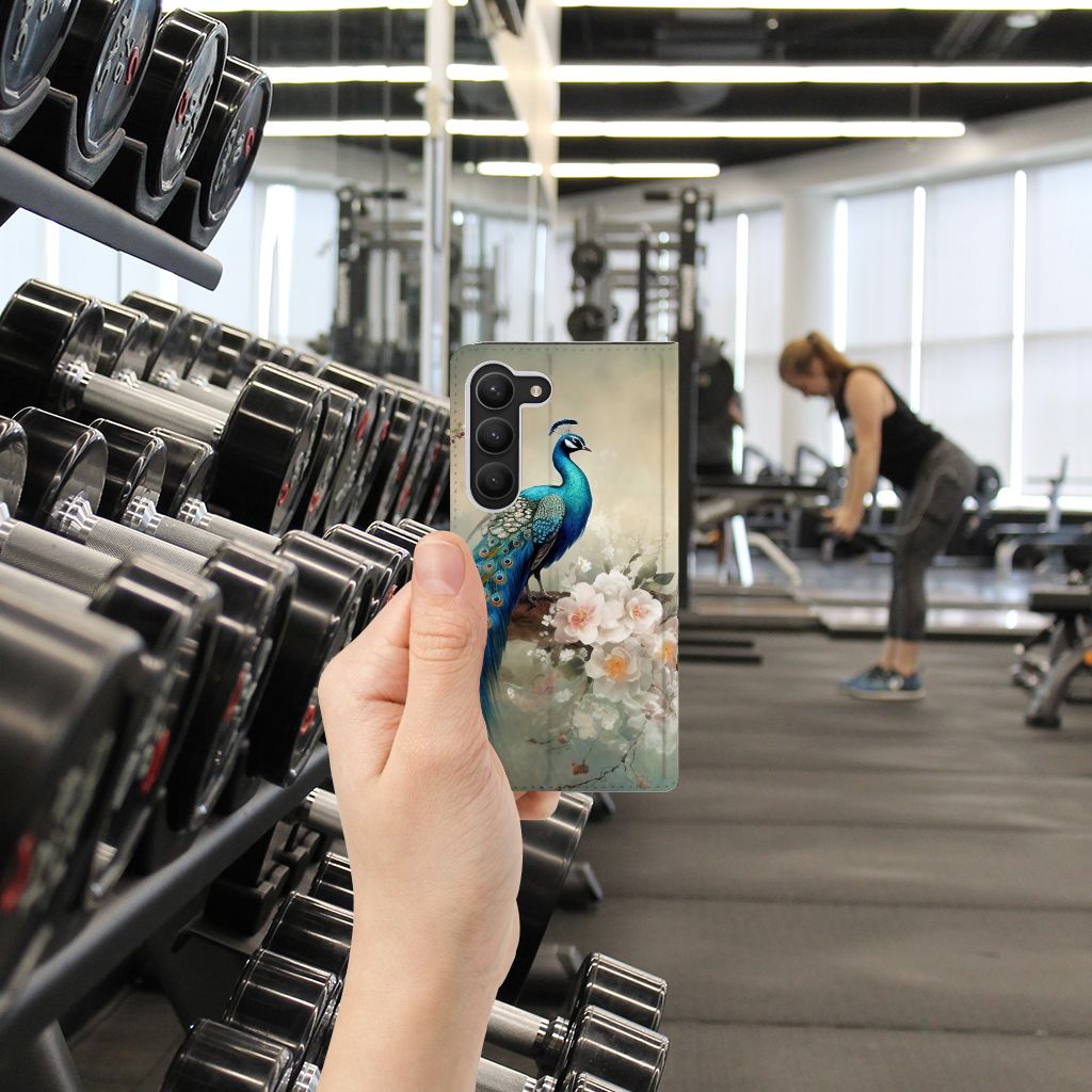 Wist je dat de sleep van pauwen bestaat uit wel 150 kleurige veren? Als de haan zijn sleep opzet om een vrouwtje te veroveren dan zie je deze veren het duidelijkst. Er zijn mensen die geloven dat een pauwenveer geluk brengt! Daarom mag dit romantische vintage pauwen design zeker niet ontbreken in onze collectie. Het blijven toch echt prachtige en fascinerende dieren om te zien! Dit design wordt geprint op een Hoesje maken speciaal op maat gemaakt voor de Samsung Galaxy S23. In dit hoesje kun je een pasje kwijt, super fijn toch? Vouw het hoesje om en zet het horizontaal neer voor als je graag filmpjes op je Samsung Galaxy S23 kijkt. De magneten aan de binnenkant zorgen ervoor dat het hoesje dicht blijft in bijv. je tas. Bescherm jouw smartphone vandaag nog met dit romantische pauwen design hoesje!