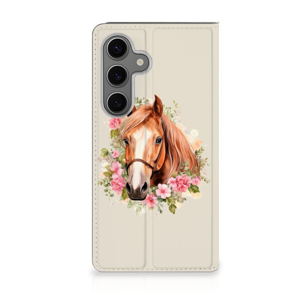 Toen we in 2014 begonnen met het bedrukken van telefoonhoesjes, was een van de eerste designs eentje met paarden erop. Nu zoveel jaar later is dit een van onze populairste hoesjes voor zowel jong als oud. Vandaar dat we nog een design toevoegen aan onze collectie met een paard erop, hopelijk wordt dit design net zo geliefd! Het design wordt geprint op een Hoesje maken speciaal op maat gemaakt voor de Samsung Galaxy S25. In dit hoesje kun je een pasje kwijt, super fijn toch? Vouw het hoesje om en zet het horizontaal neer voor als je graag filmpjes op je Samsung Galaxy S25 kijkt. De magneten aan de binnenkant zorgen ervoor dat het hoesje dicht blijft in bijv. je tas. Bescherm jouw smartphone vandaag nog met dit mooie design hoesje!