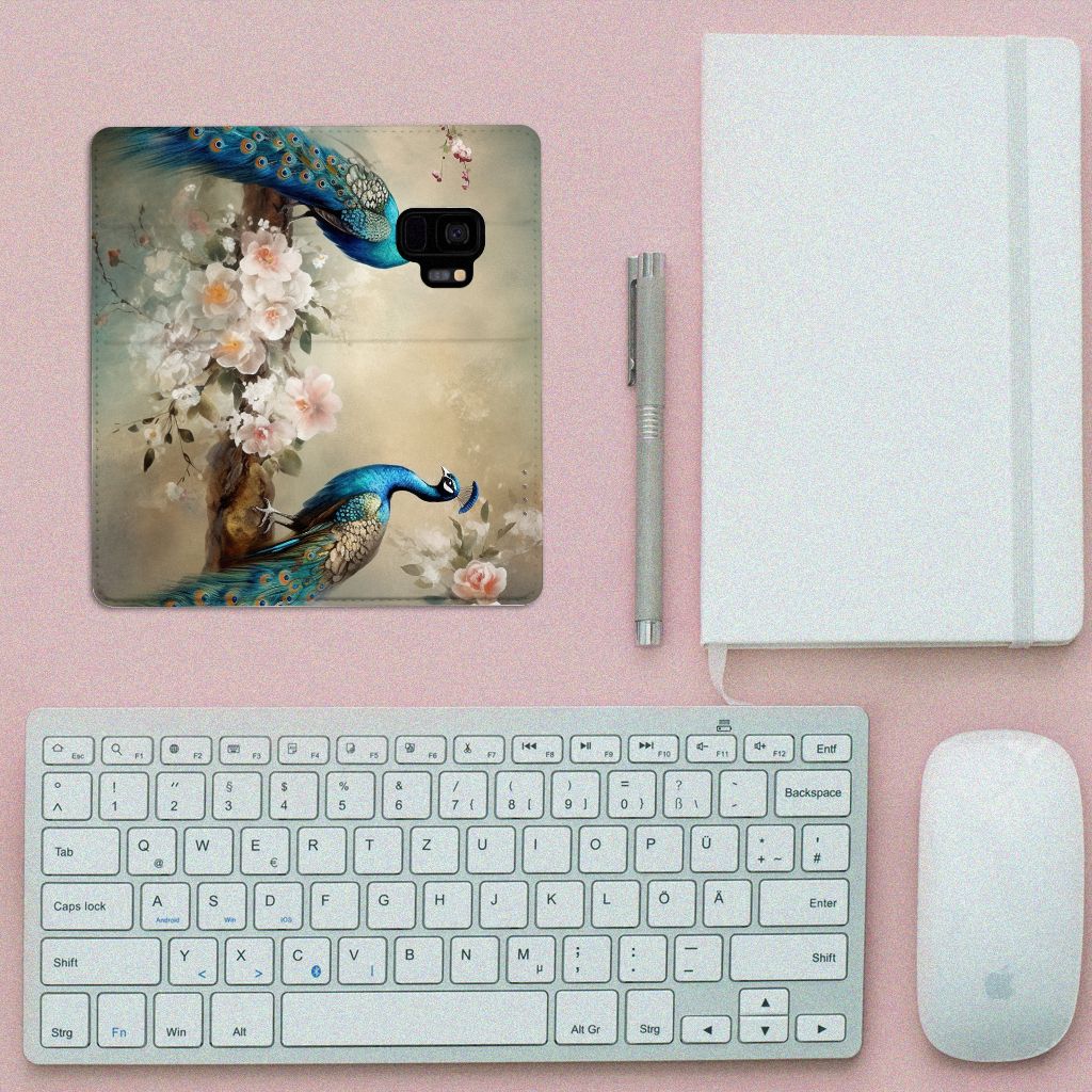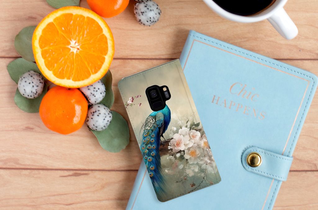 Wist je dat de sleep van pauwen bestaat uit wel 150 kleurige veren? Als de haan zijn sleep opzet om een vrouwtje te veroveren dan zie je deze veren het duidelijkst. Er zijn mensen die geloven dat een pauwenveer geluk brengt! Daarom mag dit romantische vintage pauwen design zeker niet ontbreken in onze collectie. Het blijven toch echt prachtige en fascinerende dieren om te zien! Dit design wordt geprint op een Hoesje maken speciaal op maat gemaakt voor de Samsung Galaxy S9. In dit hoesje kun je een pasje kwijt, super fijn toch? Vouw het hoesje om en zet het horizontaal neer voor als je graag filmpjes op je Samsung Galaxy S9 kijkt. De magneten aan de binnenkant zorgen ervoor dat het hoesje dicht blijft in bijv. je tas. Bescherm jouw smartphone vandaag nog met dit romantische pauwen design hoesje!