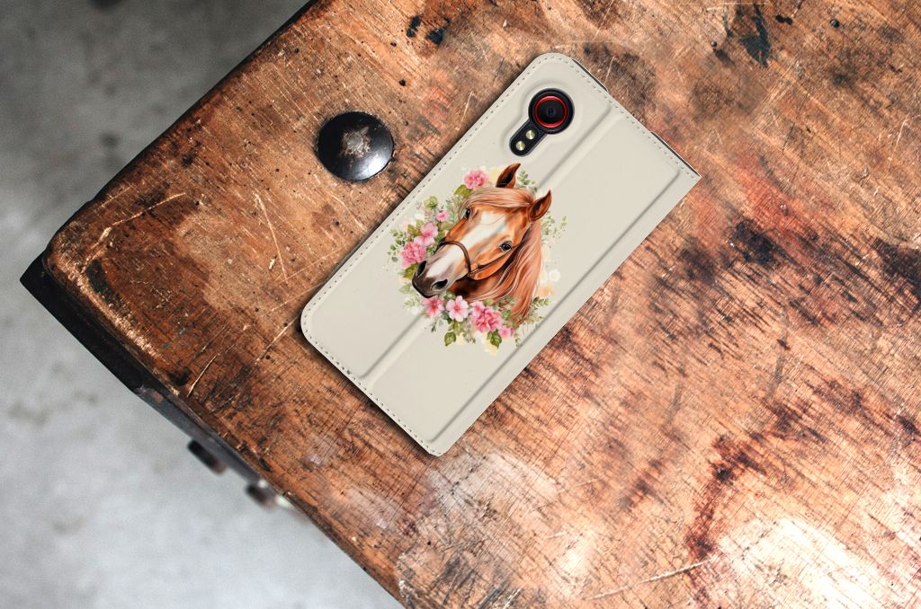 Toen we in 2014 begonnen met het bedrukken van telefoonhoesjes, was een van de eerste designs eentje met paarden erop. Nu zoveel jaar later is dit een van onze populairste hoesjes voor zowel jong als oud. Vandaar dat we nog een design toevoegen aan onze collectie met een paard erop, hopelijk wordt dit design net zo geliefd! Het design wordt geprint op een Hoesje maken speciaal op maat gemaakt voor de Samsung Galaxy Xcover 5. In dit hoesje kun je een pasje kwijt, super fijn toch? Vouw het hoesje om en zet het horizontaal neer voor als je graag filmpjes op je Samsung Galaxy Xcover 5 kijkt. De magneten aan de binnenkant zorgen ervoor dat het hoesje dicht blijft in bijv. je tas. Bescherm jouw smartphone vandaag nog met dit mooie design hoesje!